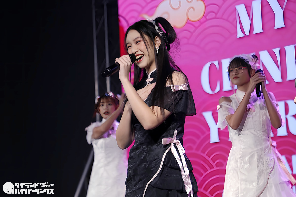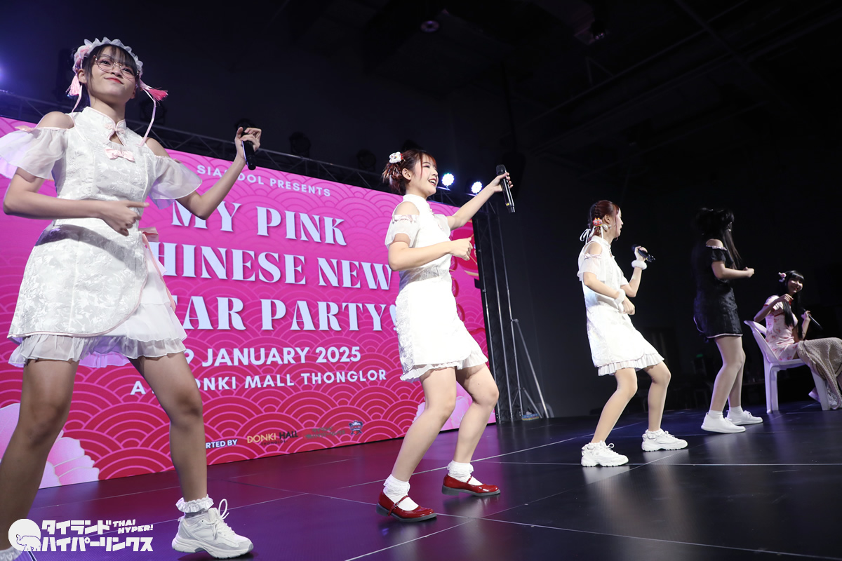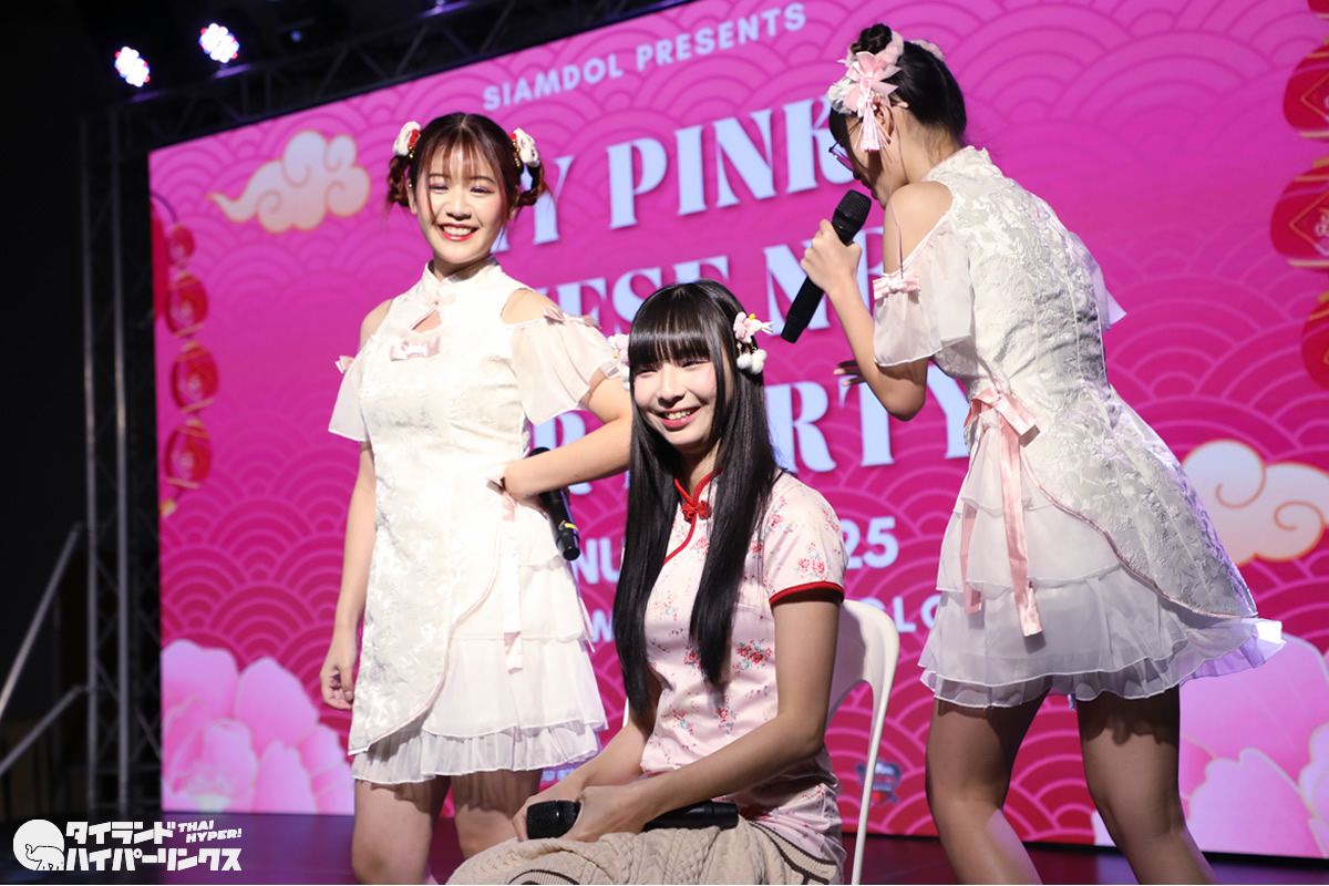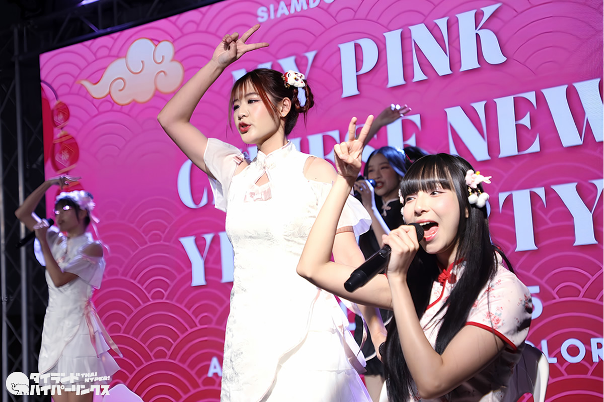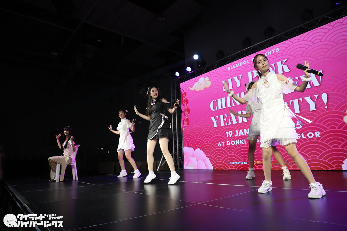 Siamdolに所属するSumomo(スモモ)は、日本のお祭りアイドル FES☆TIVEと姉妹グループ。『My Pink Chinese New Year Party』には3番手の登場です。なお、この日はプイファーイは負傷により、座ったままでのパフォーマンスとなりました。