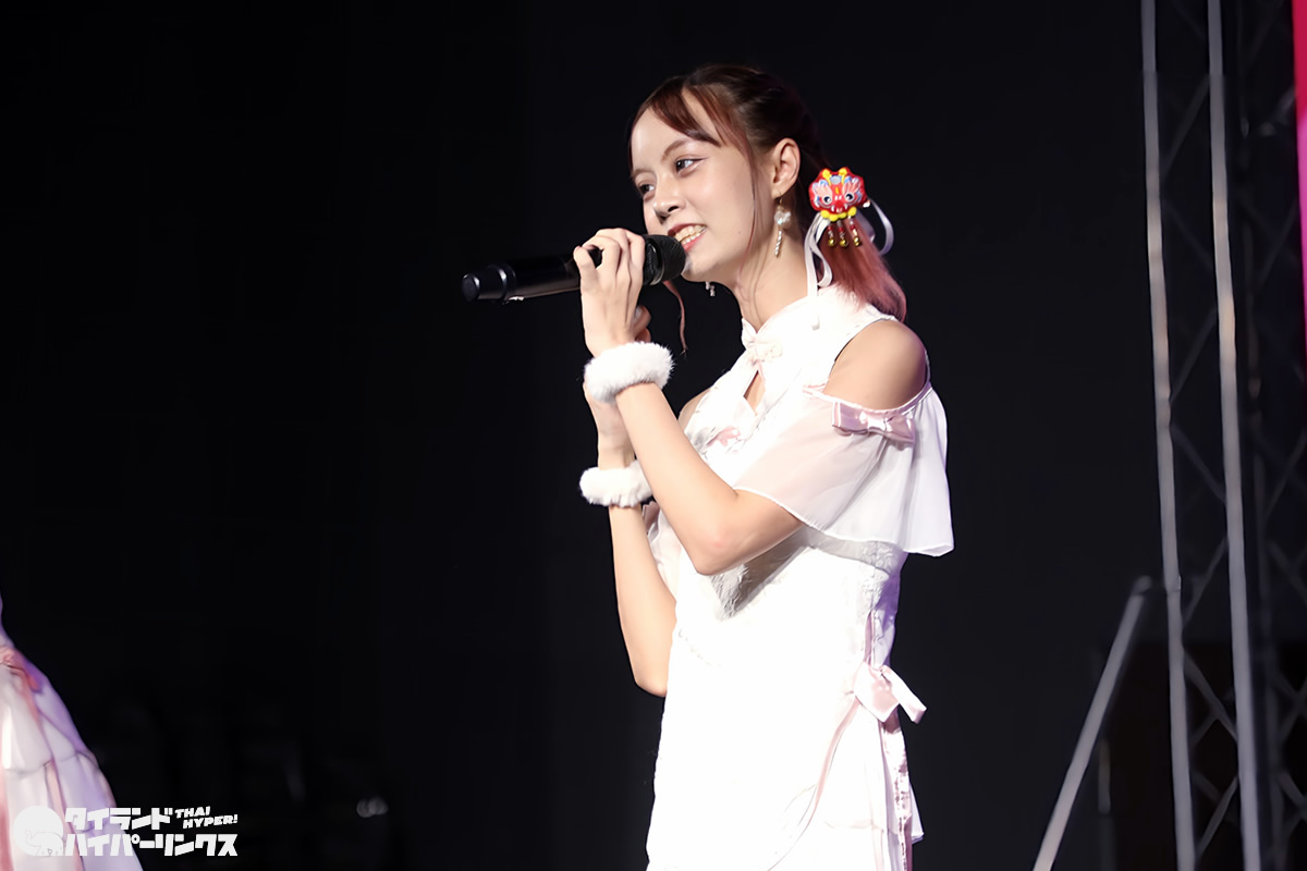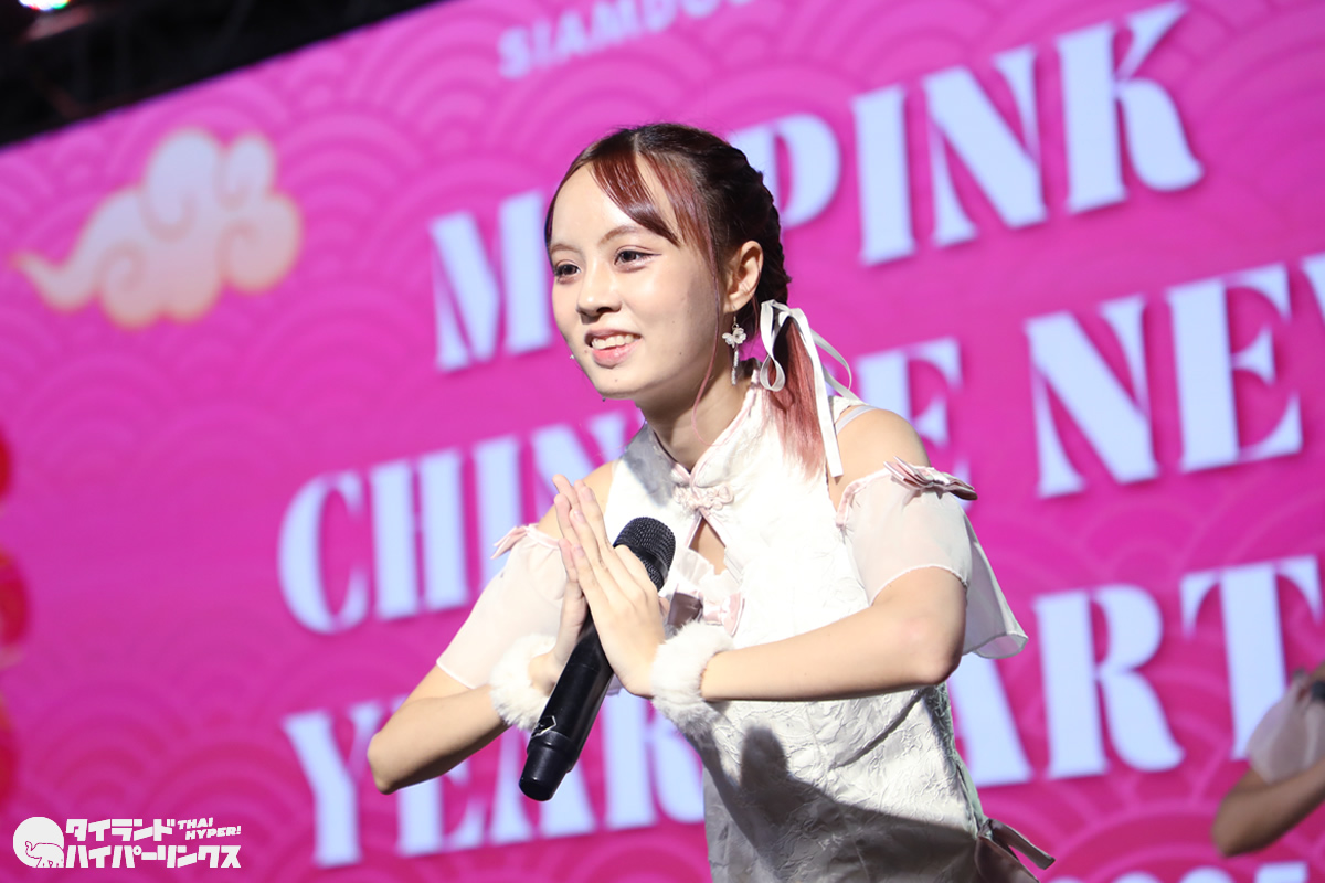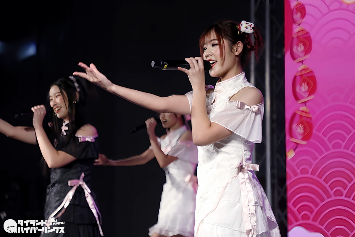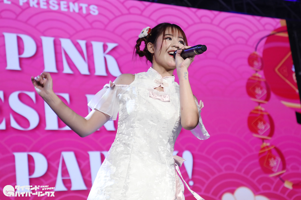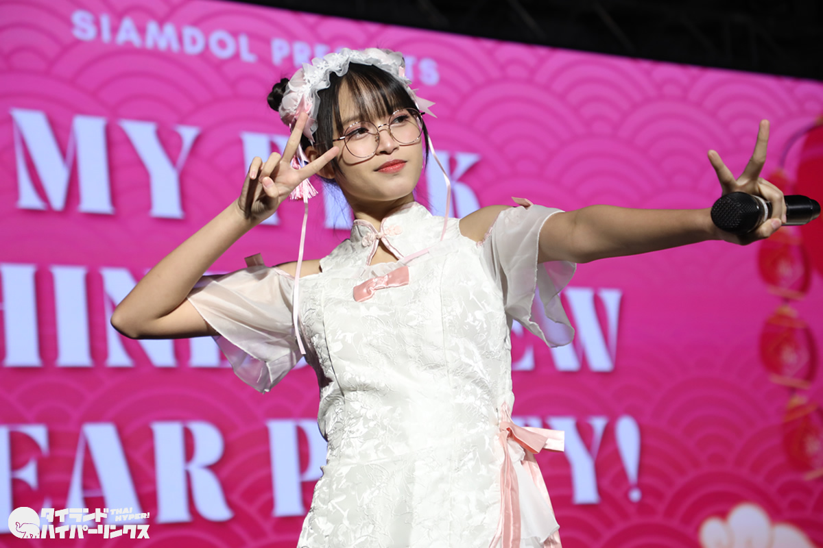 Siamdolに所属するSumomo(スモモ)は、日本のお祭りアイドル FES☆TIVEと姉妹グループ。『My Pink Chinese New Year Party』には3番手の登場です。なお、この日はプイファーイは負傷により、座ったままでのパフォーマンスとなりました。