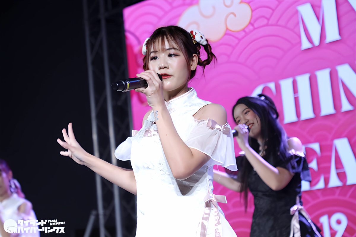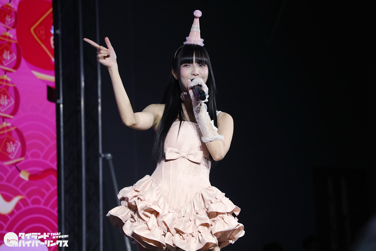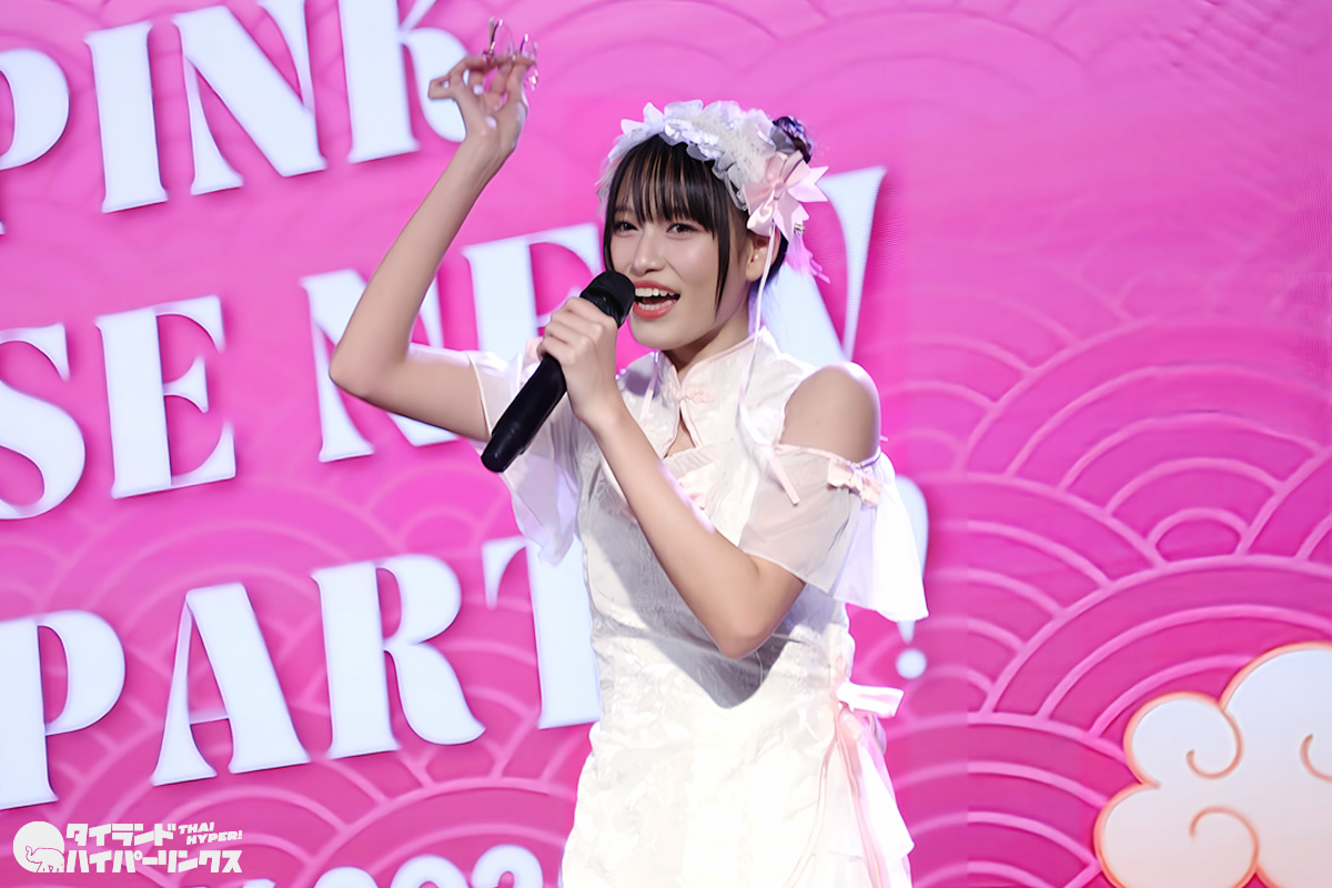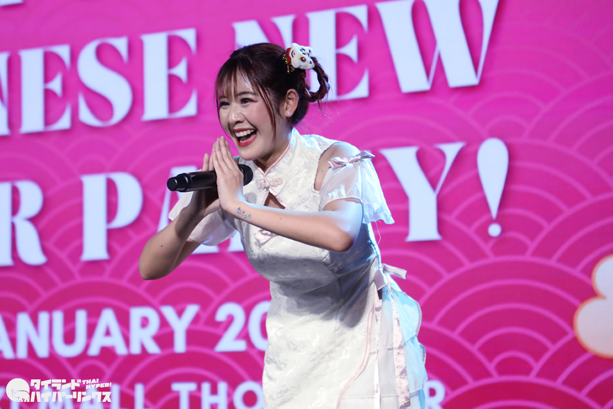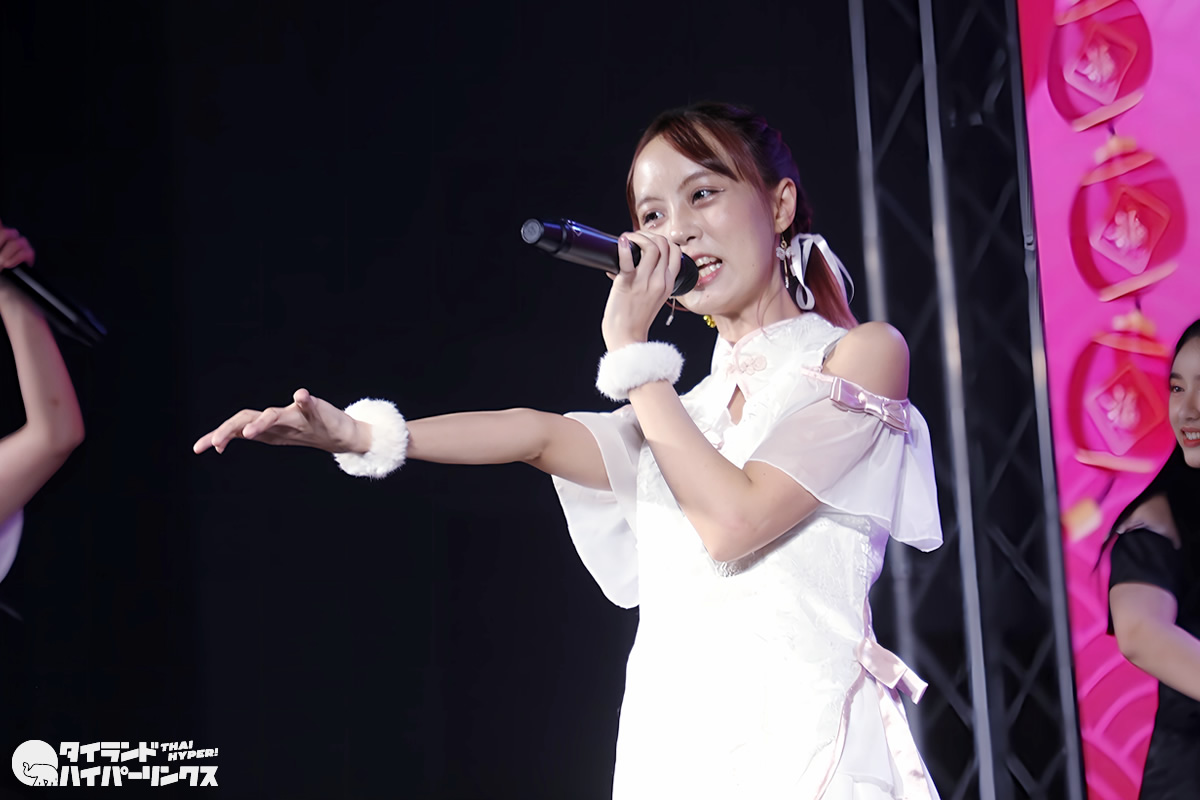 Siamdolに所属するSumomo(スモモ)は、日本のお祭りアイドル FES☆TIVEと姉妹グループ。『My Pink Chinese New Year Party』には3番手の登場です。なお、この日はプイファーイは負傷により、座ったままでのパフォーマンスとなりました。
