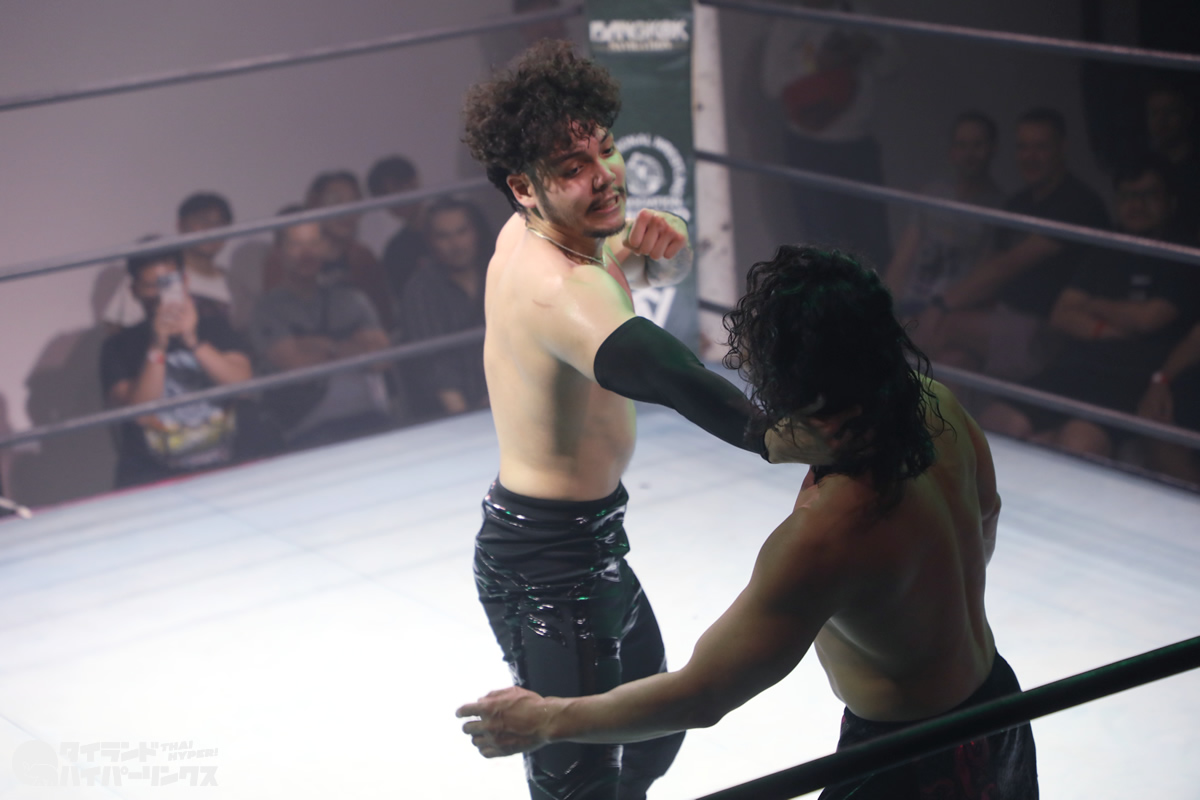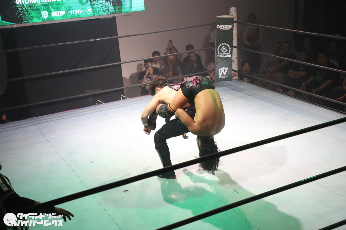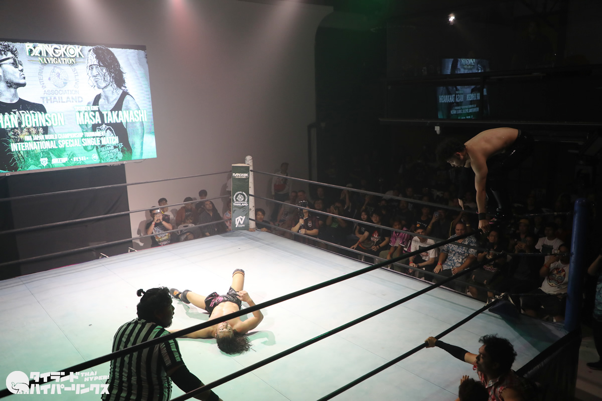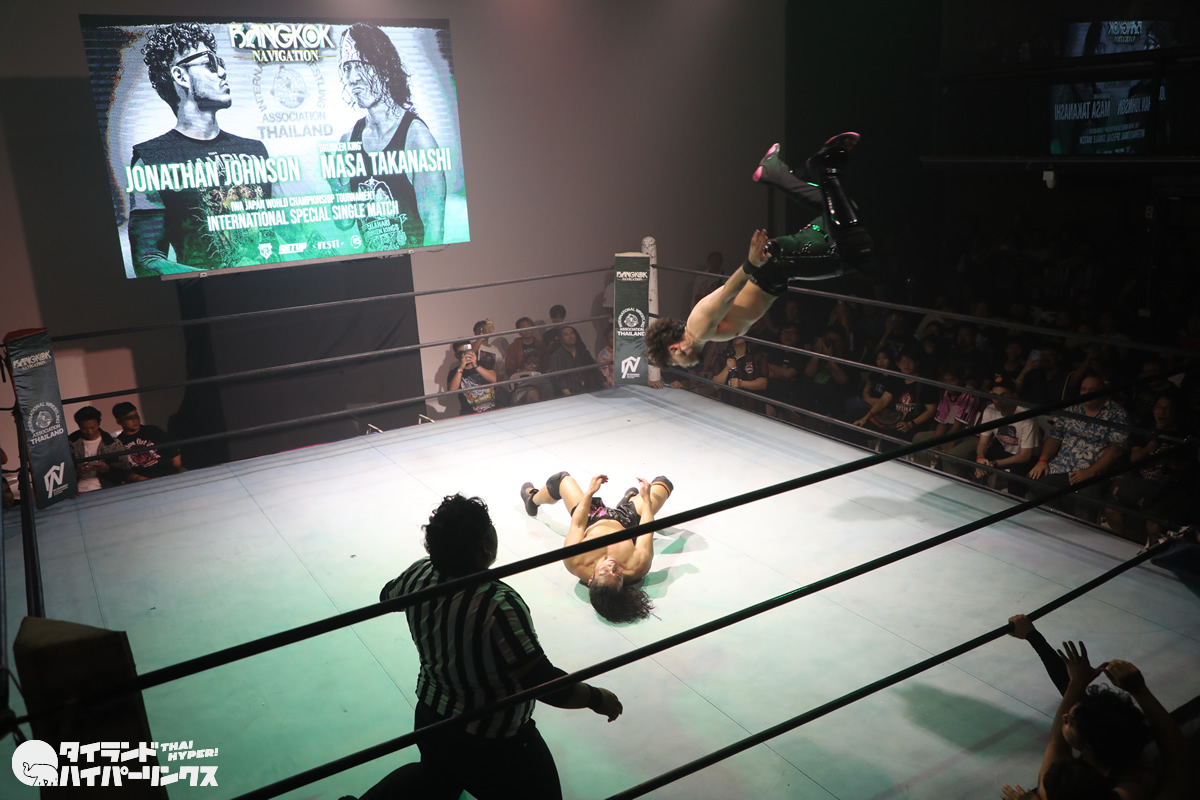 ジョナサン・ジョンソン選手は、タイのプロレスを作り上げた功労者の一人である高梨将弘選手の試合を幼い頃から見てきた一人です。プロレスラーとしてのキャリア初期には、高梨将弘選手と実際に対戦したこともありましたが、その頃はまだ若手として経験が浅く、高梨将弘選手の壁を越えることはできませんでした。しかし、それから年月を経て成長を遂げ、21歳になったジョナサン・ジョンソン選手は、IWAタイランド旗揚げ戦という重要な舞台で憧れの存在との再戦に臨むことになったのです。