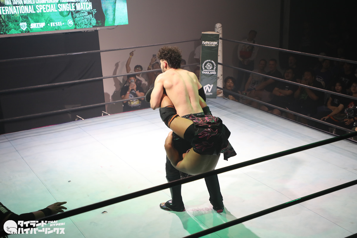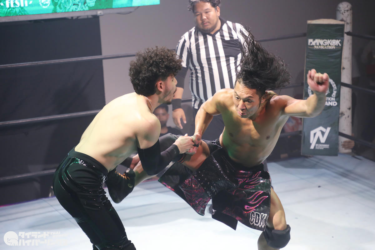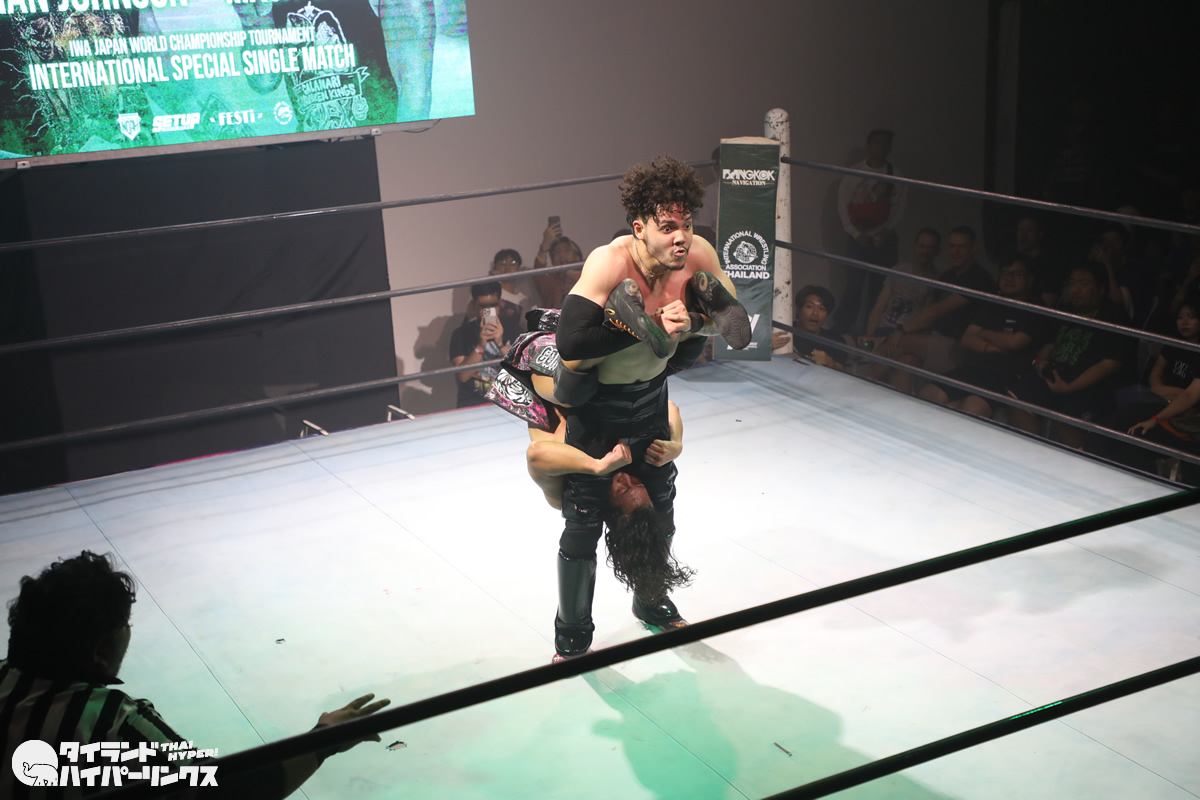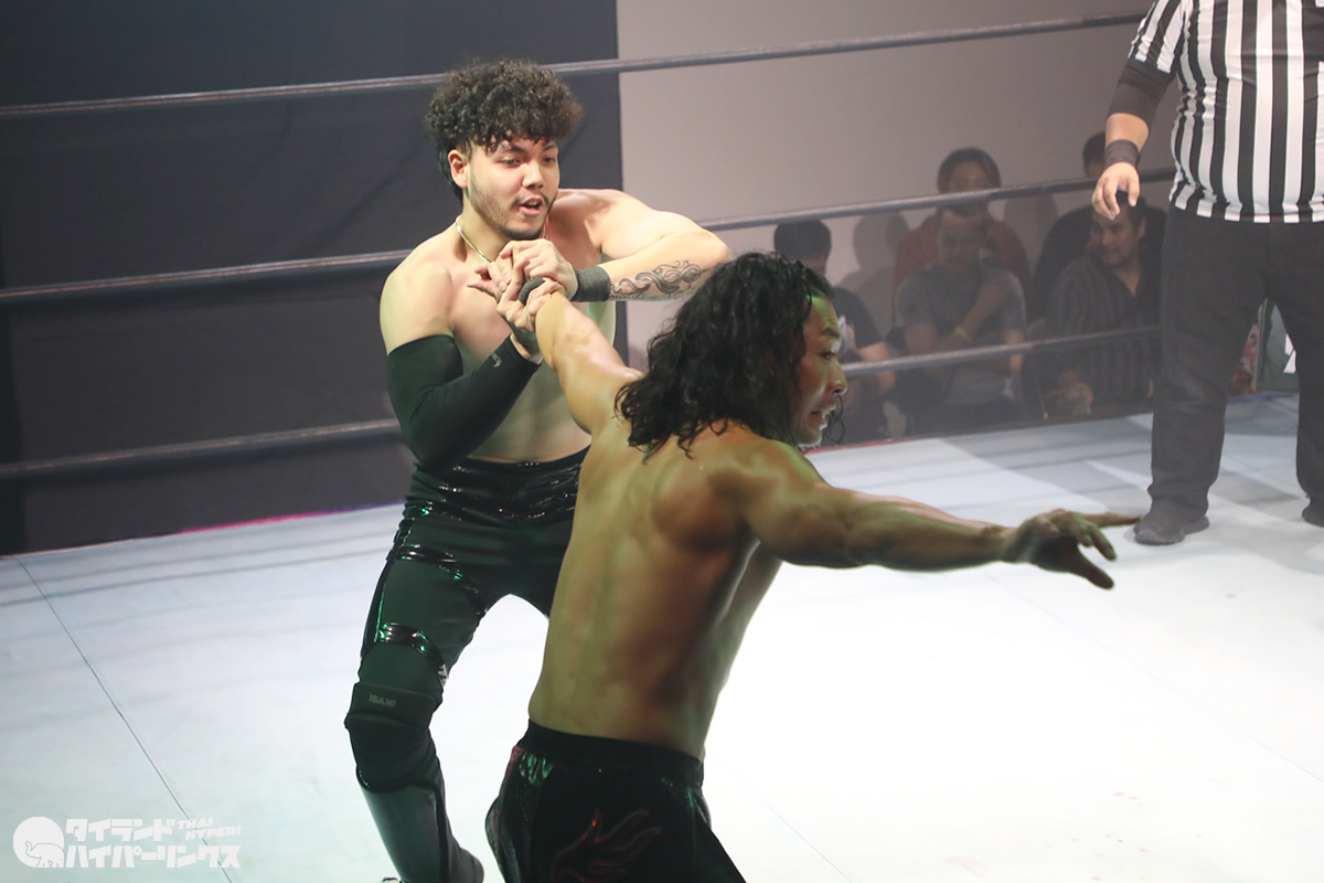 ジョナサン・ジョンソン選手は、タイのプロレスを作り上げた功労者の一人である高梨将弘選手の試合を幼い頃から見てきた一人です。プロレスラーとしてのキャリア初期には、高梨将弘選手と実際に対戦したこともありましたが、その頃はまだ若手として経験が浅く、高梨将弘選手の壁を越えることはできませんでした。しかし、それから年月を経て成長を遂げ、21歳になったジョナサン・ジョンソン選手は、IWAタイランド旗揚げ戦という重要な舞台で憧れの存在との再戦に臨むことになったのです。