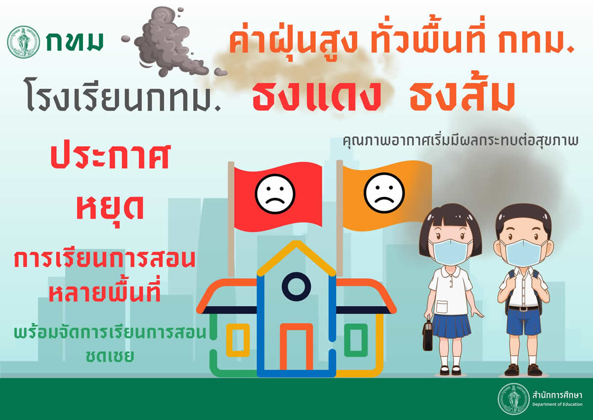 2025年1月22日、バンコク都教育局は、PM2.5微小粒子状物質の濃度が基準を超えたため、バンコク都立学校における対応方針を策定し、学校管理者が生徒の安全と健康を守るために判断して休校を指示できる措置を発表しました。