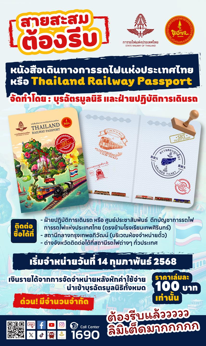 タイ国鉄(SRT)は、鉄道の旅をより魅力的にする新たな取り組みとして 「SRT RAILWAY PASSPORT」 を発表しました。2025年2月14日より、全国の主要駅で配布が開始されます。