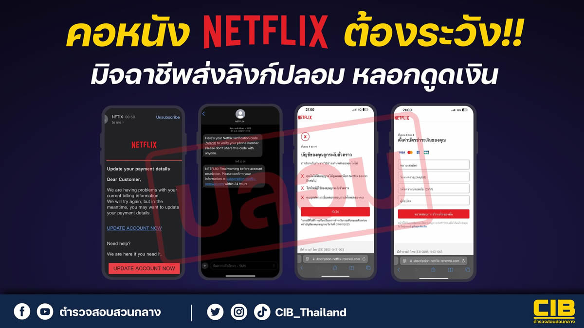 Netflixユーザーを標的とした詐欺が発生しており、タイ中央捜査局(CIB)が2025年2月14日に注意を呼びかけています。