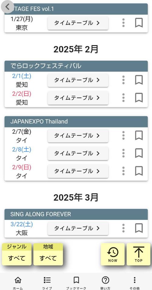 フェスの選択画面。タイテ管理したいフェスのボックスをタップする。
