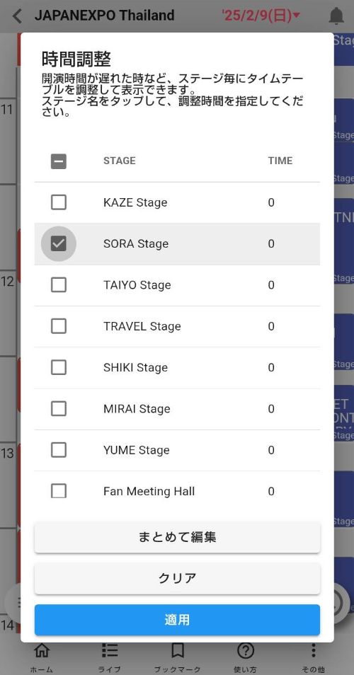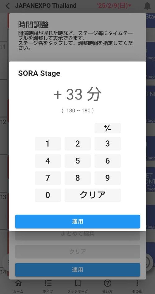 ケンジ:おおー確かにすごく便利でした。実際、今回のジャパンエキスポで、野外のSORAステージやKAZEステージで、40分近くも遅れるときもあったという、タイフェスらしいマイペンライな状況になりましたよね。でもその押してる状況を確認しながら、Stellaで押し時間を分単位で入力すると、入力した分数に合わせてタイテがちゃんと変化するのは、画期的だなと感じました。