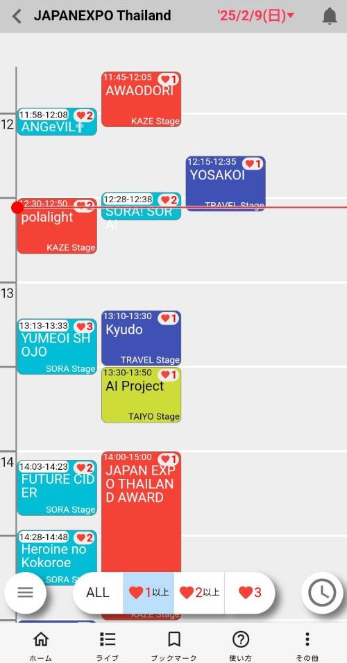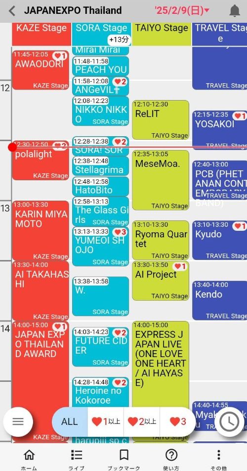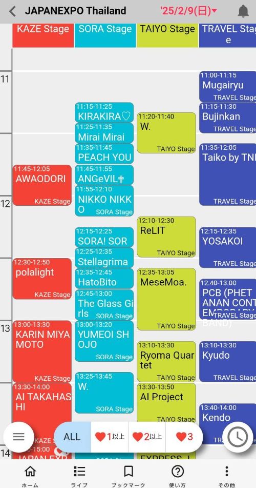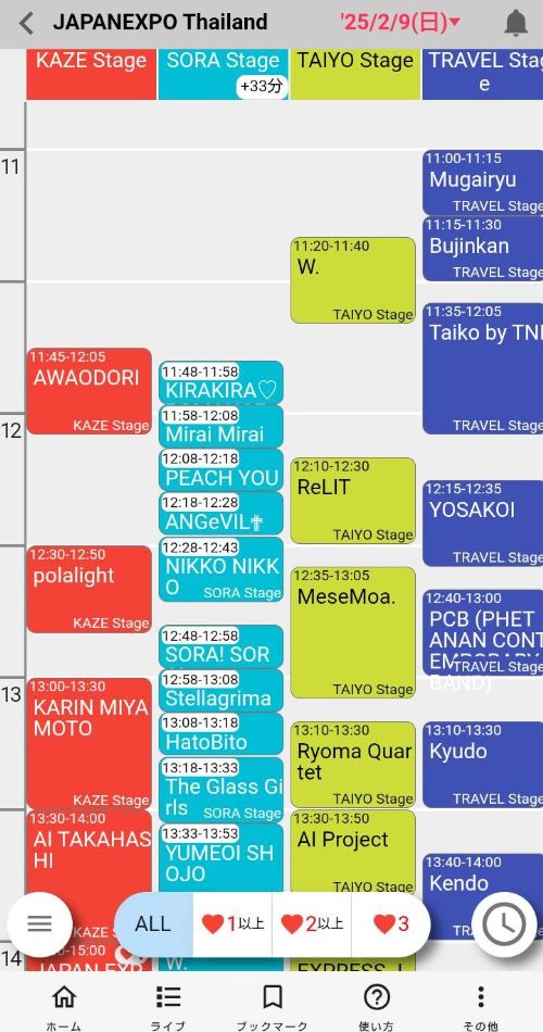 下部の「♡1 ♡2 ♡3」をタップすると、このように自分だけのタイムテーブルになって、スッキリする