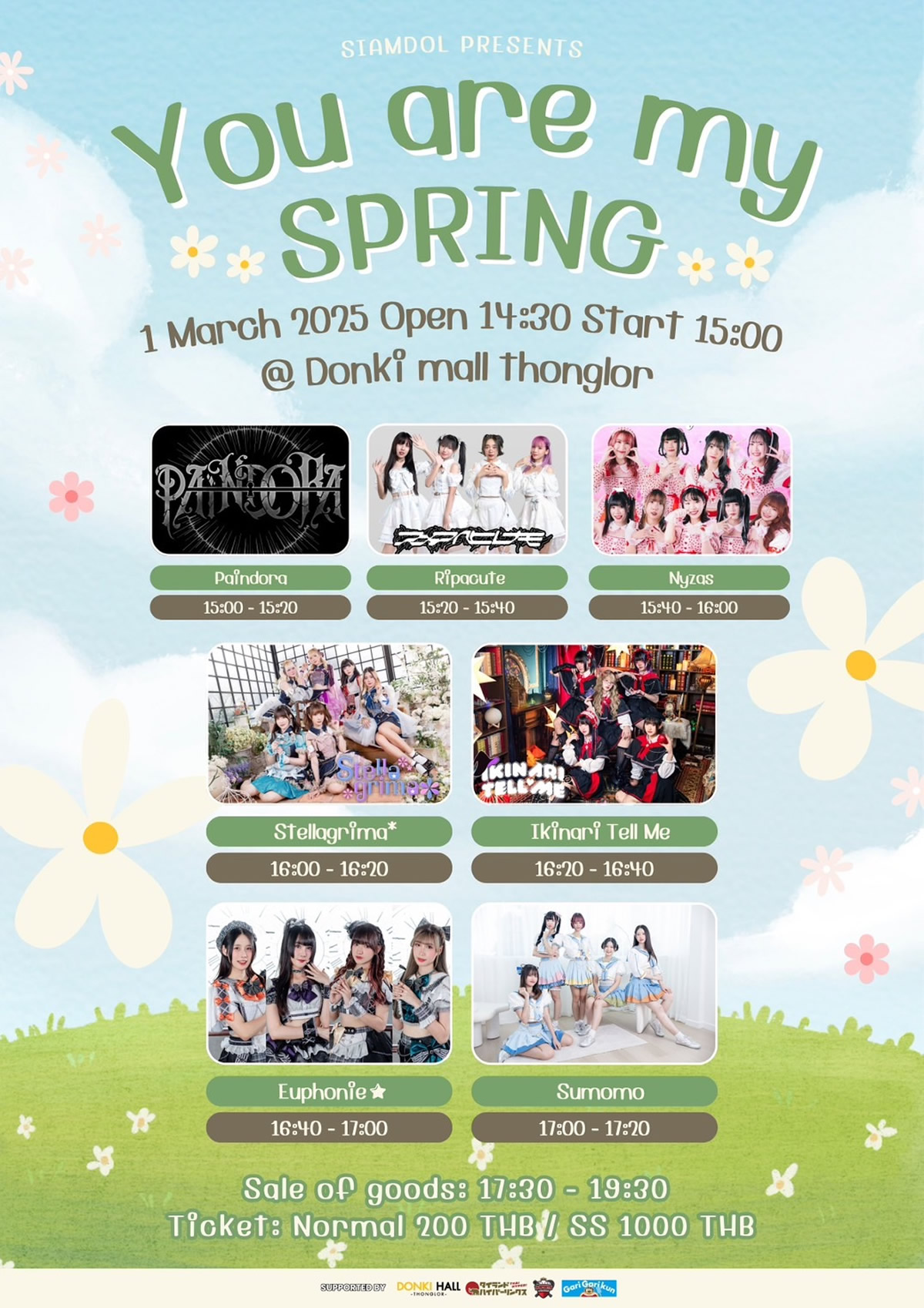 タイのアイドルグループ7組が出演する対バンライブ『You are my Spring』が、バンコクのドンキホール(ドンキモール・トンロー4階)で2025年3月1日(土)に開催されます。主催はSiamdol。入場料は一般200バーツ、最前列SS席1000バーツ。