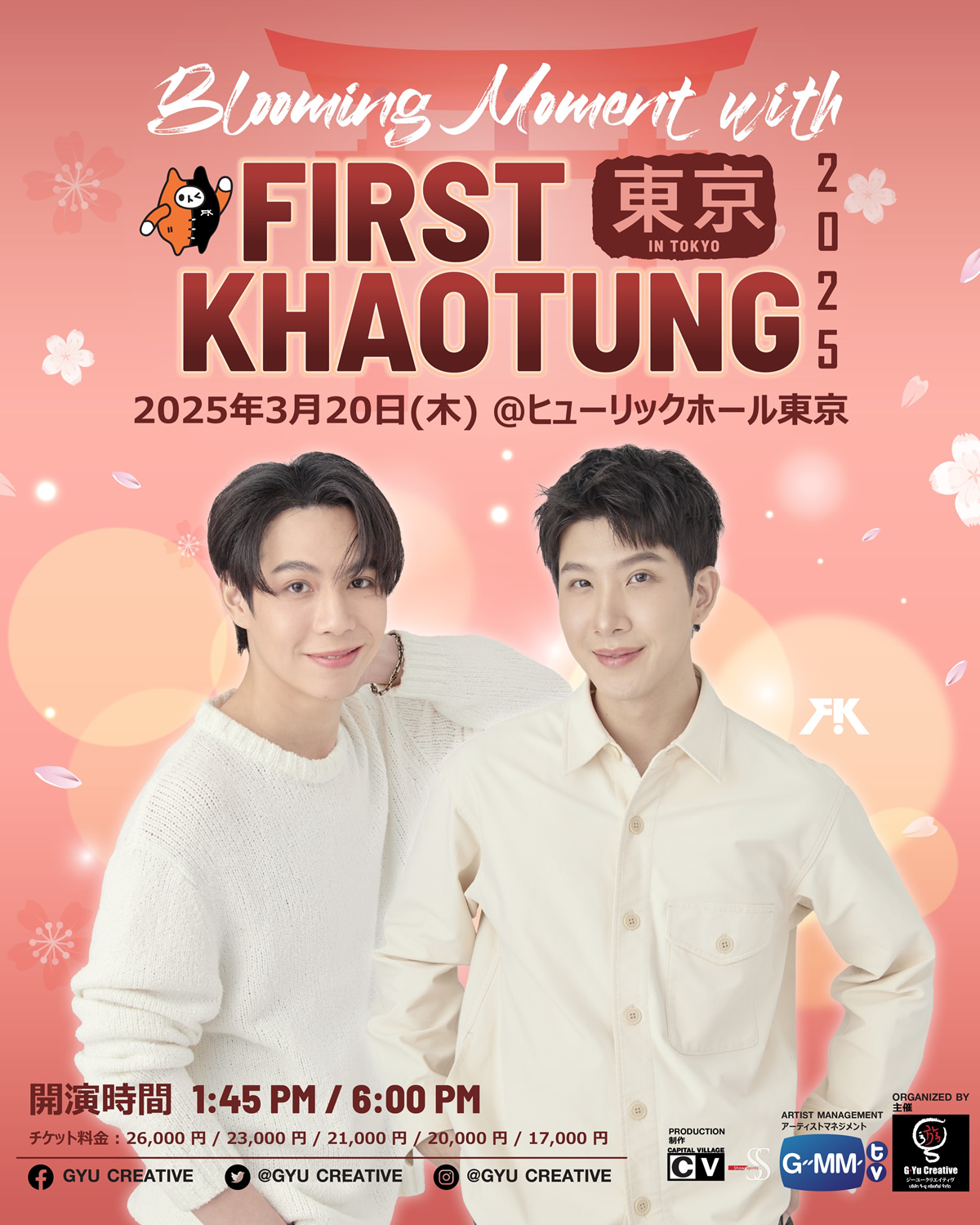 この春は忘れられない春になります! ファンミーティング「Blooming Moment with FIRST-KHAOTUNG in Tokyo 2025」で、#FIRSTKHAOTUNG と一緒に楽しい時間を過ごして暖かな春を迎えましょう!この特別な機会をお見逃しなく!🐈⬛🐈#GYUCREATIVE #GMMTV #firstkanaphan #khaotungg pic.twitter.com/4KCXwuBVPI