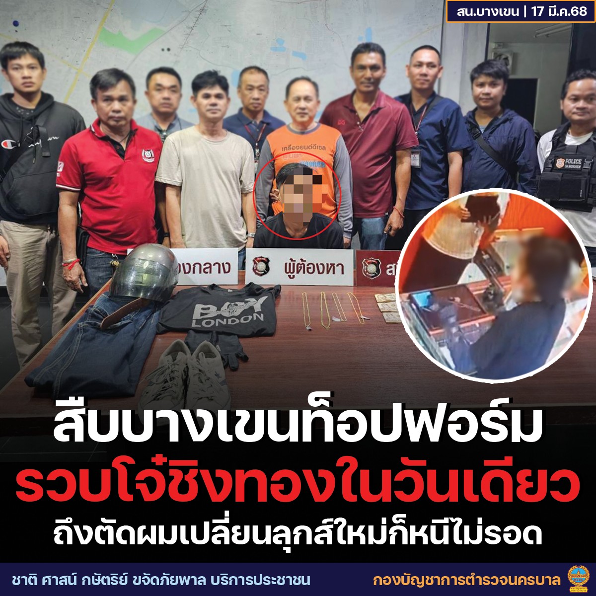 バンコク首都警察は2025年3月16日、バーンケーン警察署管内で発生した金のネックレス強奪事件の容疑者を逮捕したと発表しました。