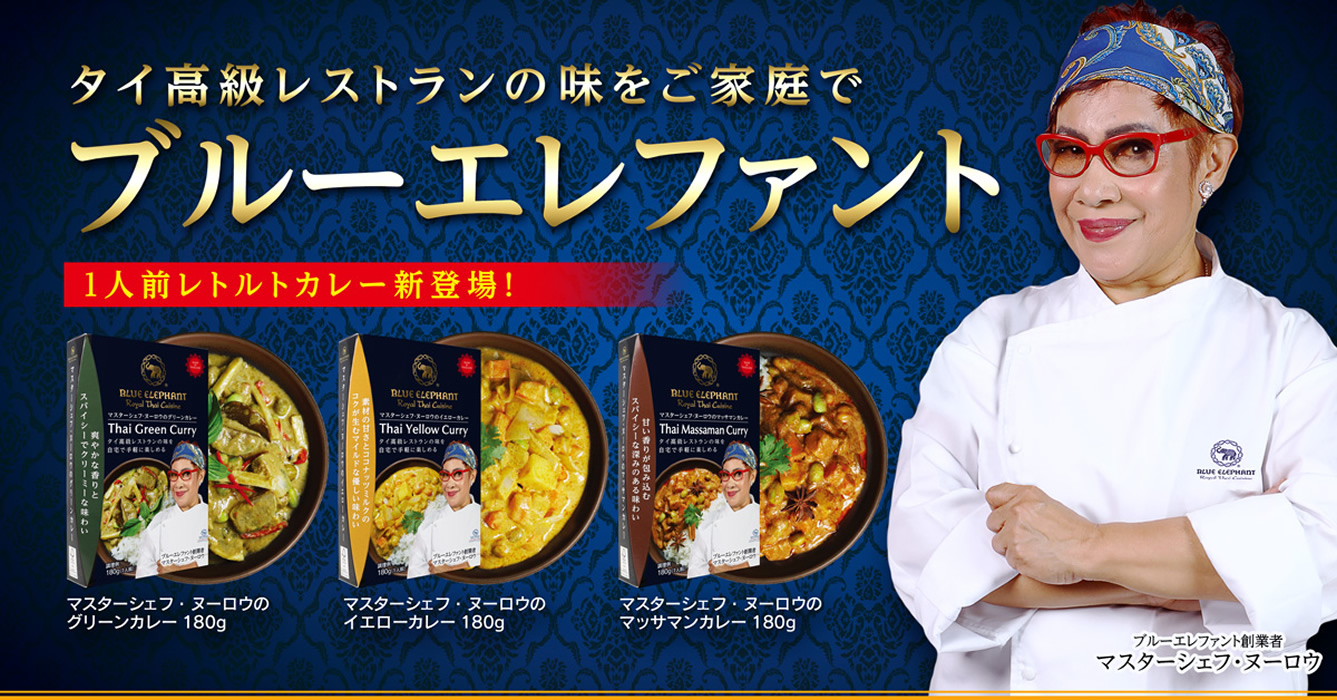 タイ・バンコクの有名タイ料理レストラン「BLUE ELEPHANT」の日本正規輸入代理店であるジェントス株式会社は2025年3月21日、新商品「マスターシェフ・ヌーロウのカレー」を発売しました。