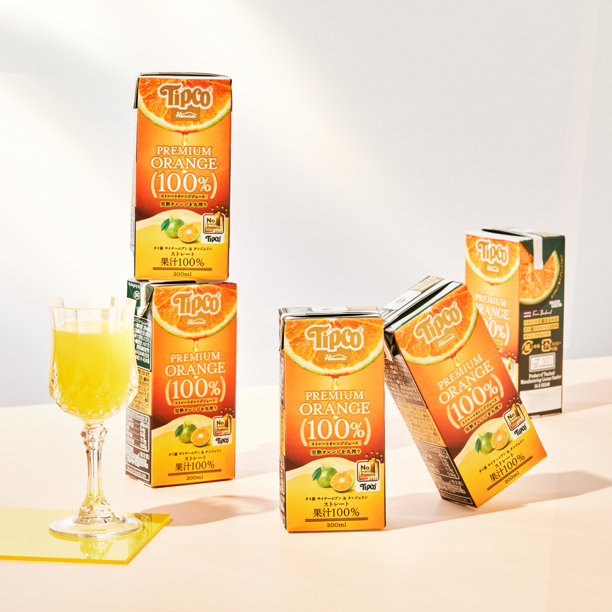 現在、世界的なオレンジ果汁の供給不足が続いており、日本国内でもオレンジジュースの値上がりや販売休止が相次いでいる中、タイ産オレンジの魅力や、果汁100%のフレッシュなオレンジジュースのおいしさを日本の皆さまへお届けしたいとの思いから、このたびTipcoとのコラボによる日本限定商品「Tipcoプレミアムオレンジ100%ジュース」を発売するに至りました。