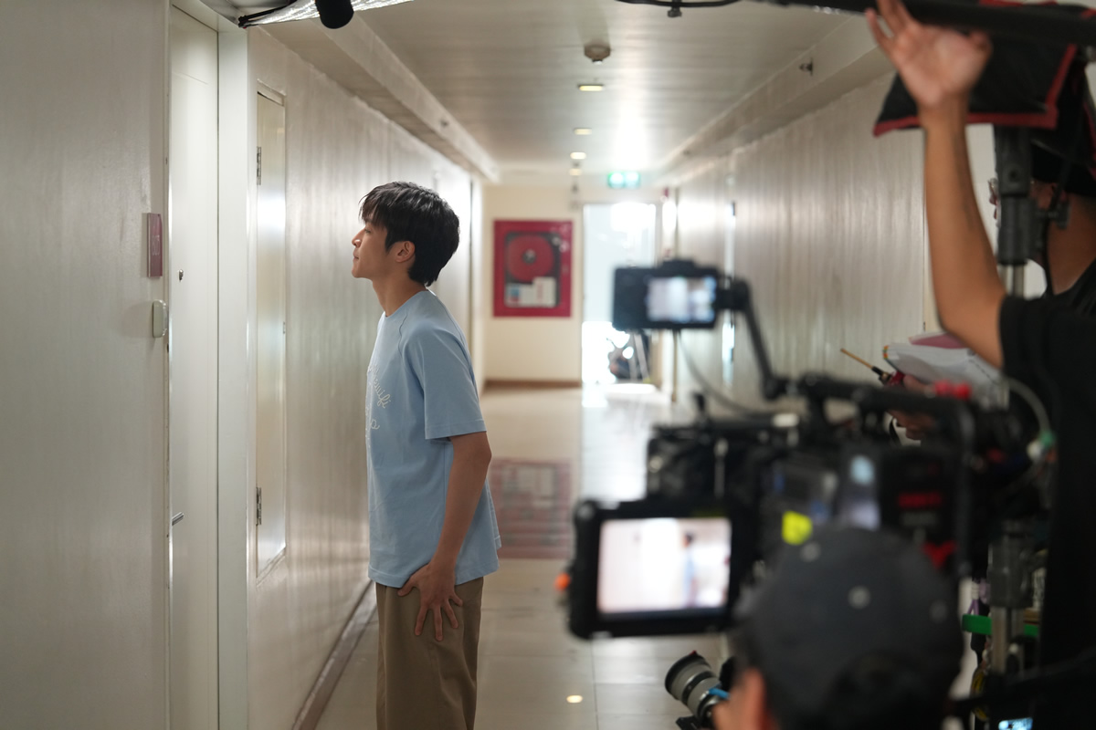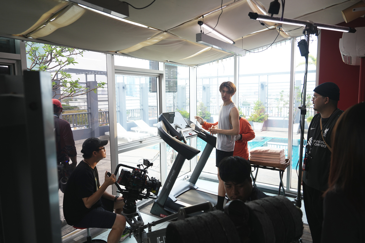 タイの制作チームを中心に撮影が進められる本作で、初主演を務める向井は、撮影初日を自身のソロシーンでスタート。最初のシーンは、ランニングマシーンで走ったり、プールで泳ぐなどの身体を動かすアクションが中心で、視線や動作でキャラクターを表現する場面となった。セリフがない分、身体で感情を伝える難しさもある中、向井の撮影に臨むテンションも少しづつあがり、緊張の中にも集中した表情を見せていた。