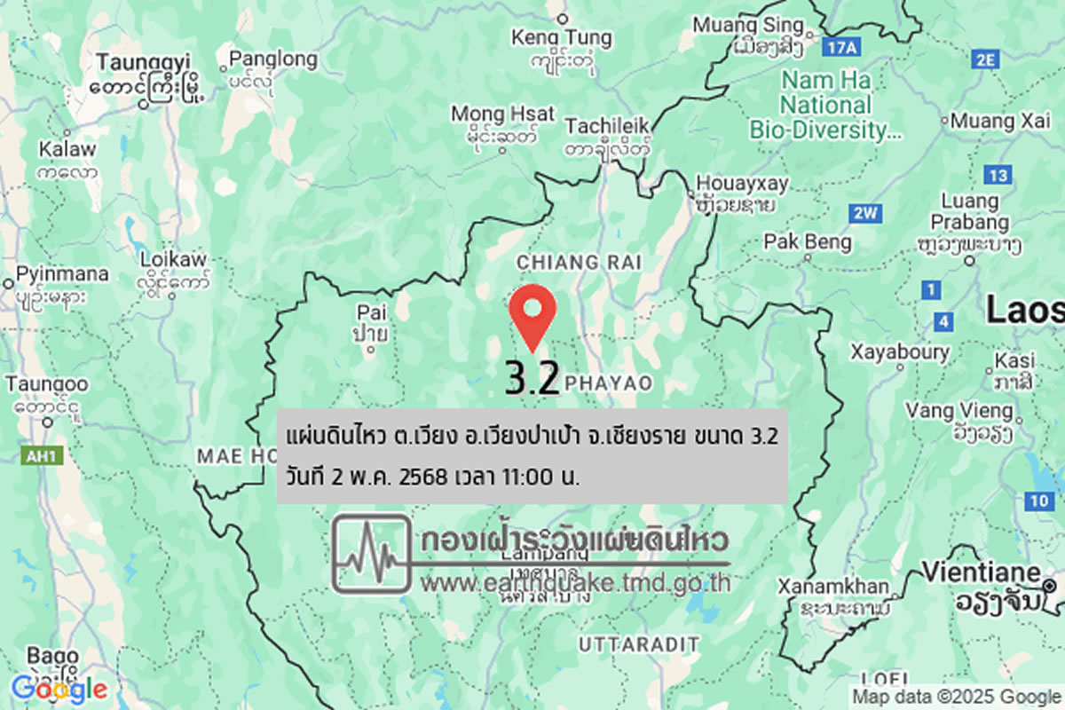 2025年5月2日午前11時0分、タイ北部チェンライ県ウィアンパパオ郡ウィアンを震源とする地震が発生しました。地震の規模はマグニチュード3.2、震源の深さはわずか1kmと浅く、建物が数秒間揺れるなどの揺れを感じたという報告が寄せられています。