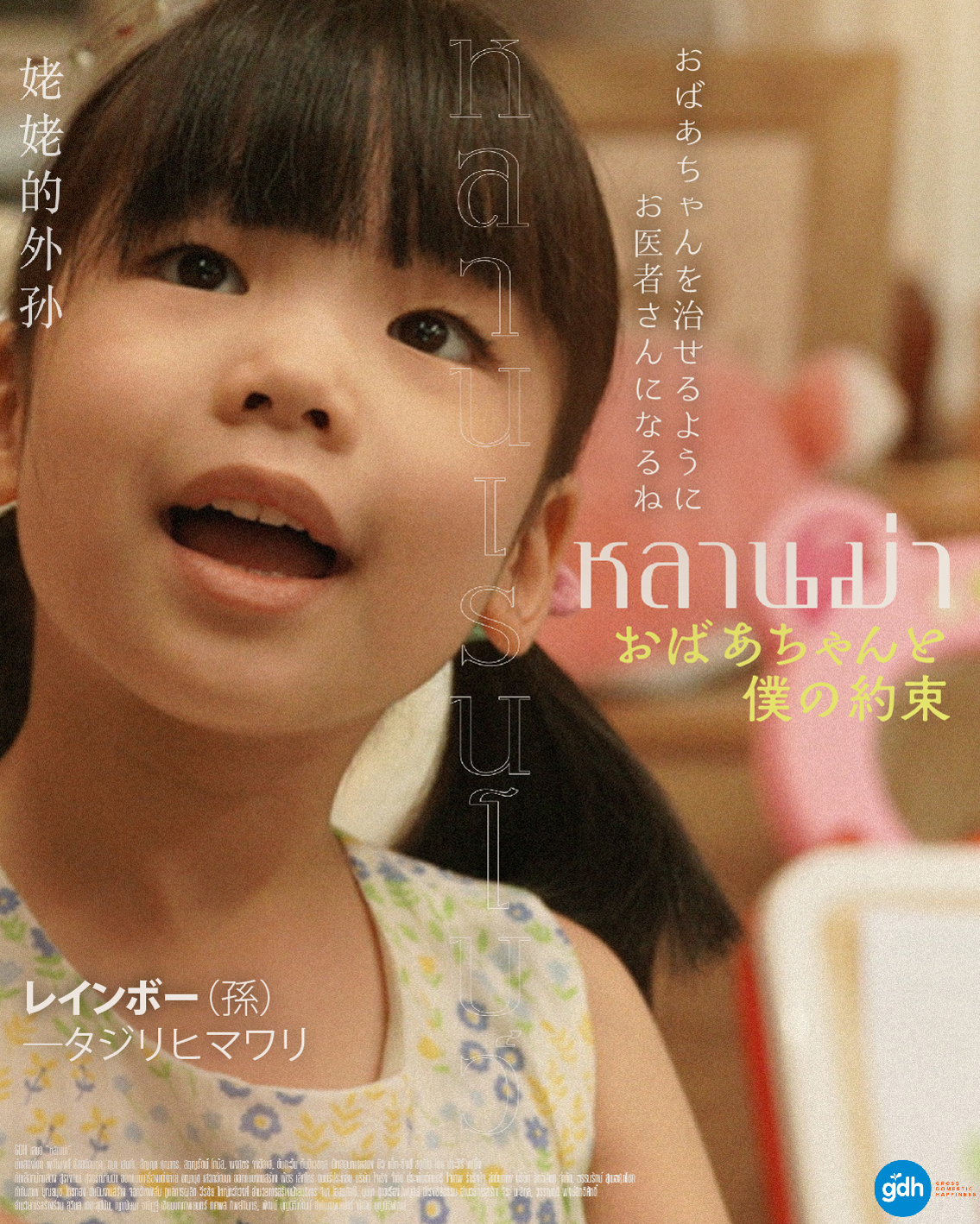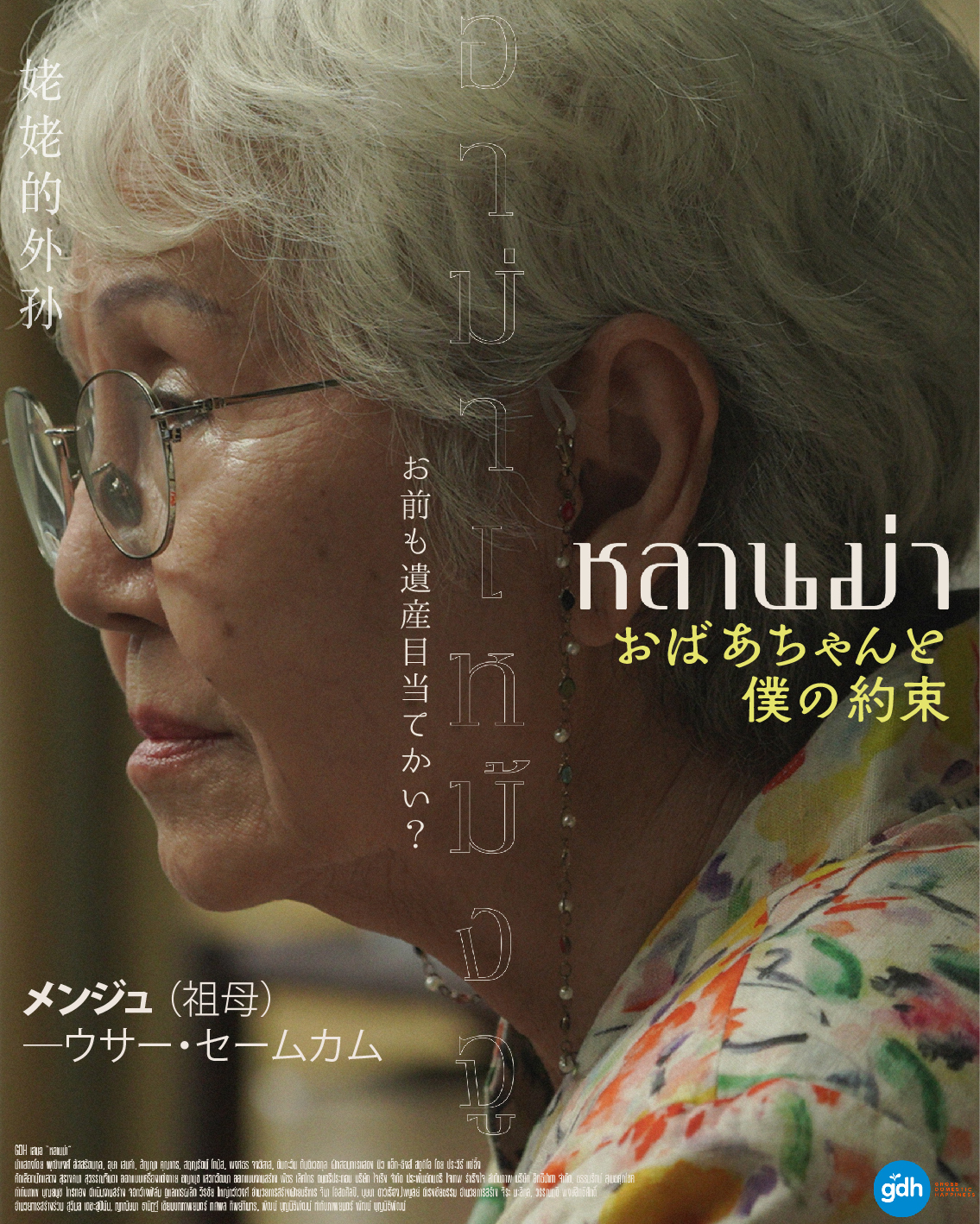 あわせて解禁となったキャラクターポスターは、主人公エムと祖母メンジュに加え、長男キアン(サンヤー・クナーコン)、長女シウ(サリンラット・トーマス)、末っ子スイ(ポンサトーン・ジョンウィラート)のメンジュの 3 人の子供たち、エムの従妹ムイ(トンタワン・タンティウェーチャクン)、キアンの娘レインボー(タジリヒマワリ)の姿を捉えた全 7 点。祖母メンジュには「お前も遺産目当てかい?」とエムへのセリフが、その他のキャラクターにはメンジュへのそれぞれの想いがわかるセリフが添えられている。