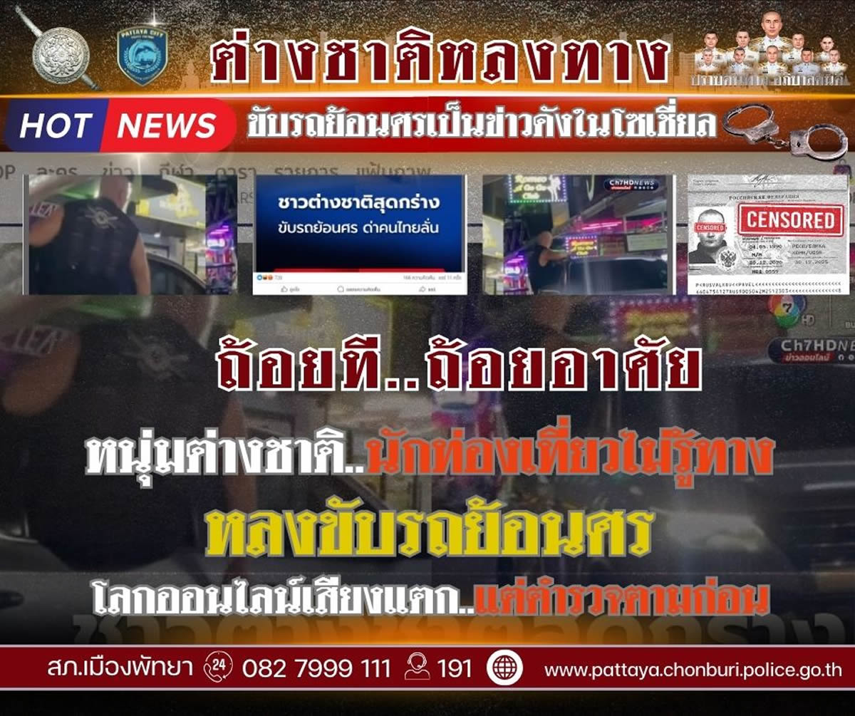 タイ東部パタヤで、外国人観光客が車で逆走し、騒ぎ立てる様子を収めた動画がSNS上で拡散し、物議を醸しました。これを受けて、パタヤ警察署が事実関係の調査と処分を行ったと、2025年5月5日に公式に発表しました。
