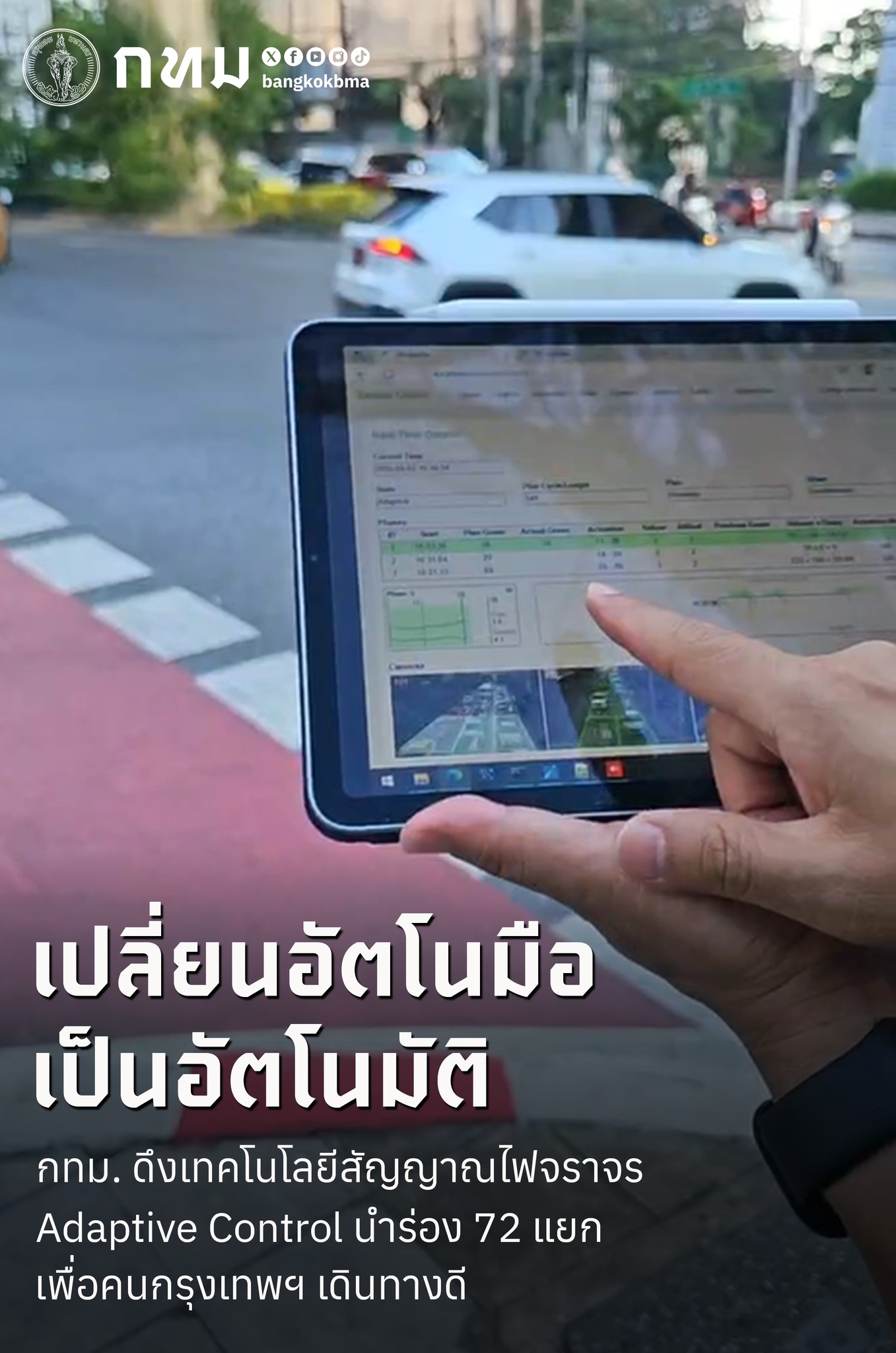 バンコク都は、交通渋滞の緩和を目的に、信号機の自動制御システム「Adaptive Control(アダプティブ・コントロール)」の導入を進めています。現在、スクンビット通りやシーロム地区など、都内72の交差点で試験運用が行われています。