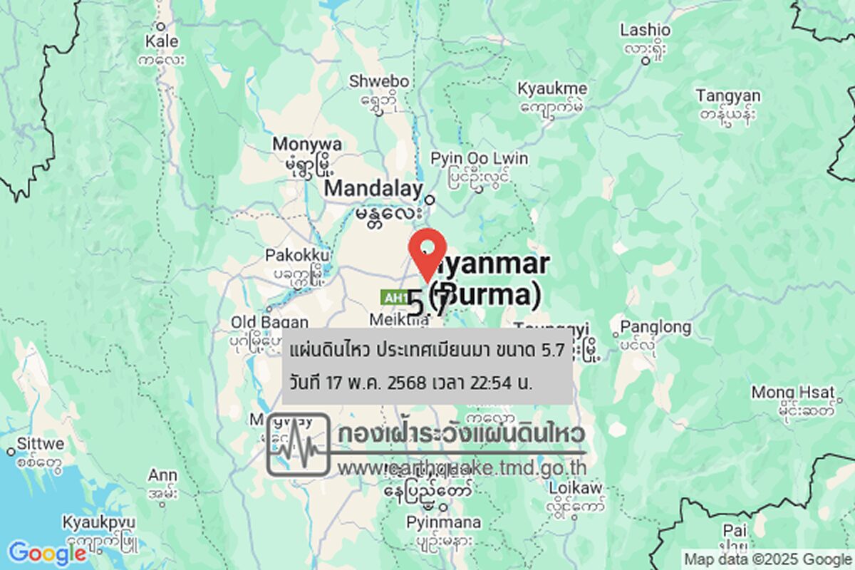 2025年5月17日午後10時54分(タイ時間)、ミャンマー中部を震源とするマグニチュード5.7の地震が発生しました。震源の深さは約10キロと推定されています。
