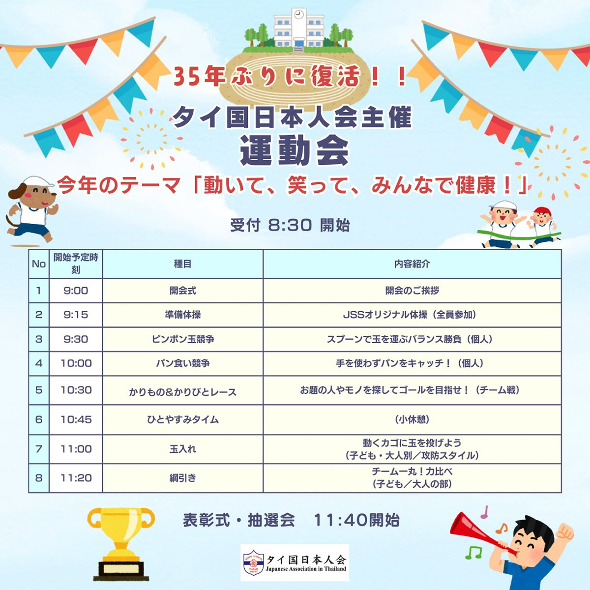 タイ在住の日本人にとって懐かしい伝統行事が、ついに帰ってきます。タイ国日本人会は、1990年以来35年ぶりとなる「日本人会運動会」を、2025年7月19日(土)に開催すると発表しました。