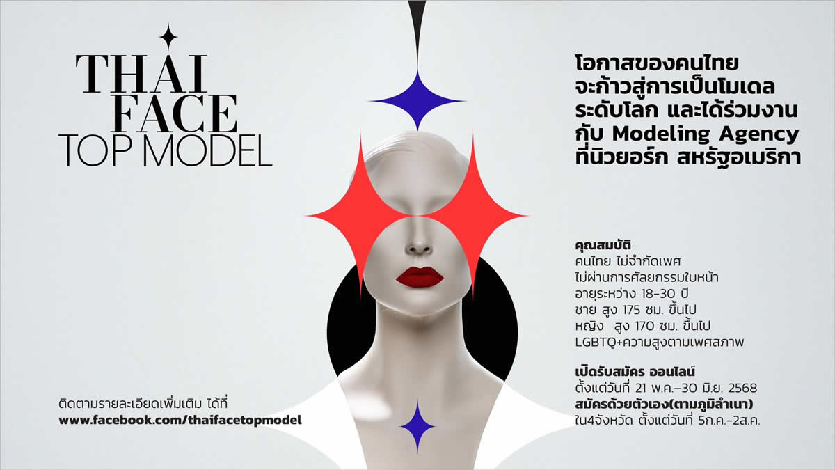 予選オーディションは、2025年7月4日から28日にかけて、コンケーン、チェンマイ、ソンクラー、バンコクの4都市で開催予定。詳細は公式Facebook(http://www.facebook.com/thaifacetopmodel)で随時発信されます。