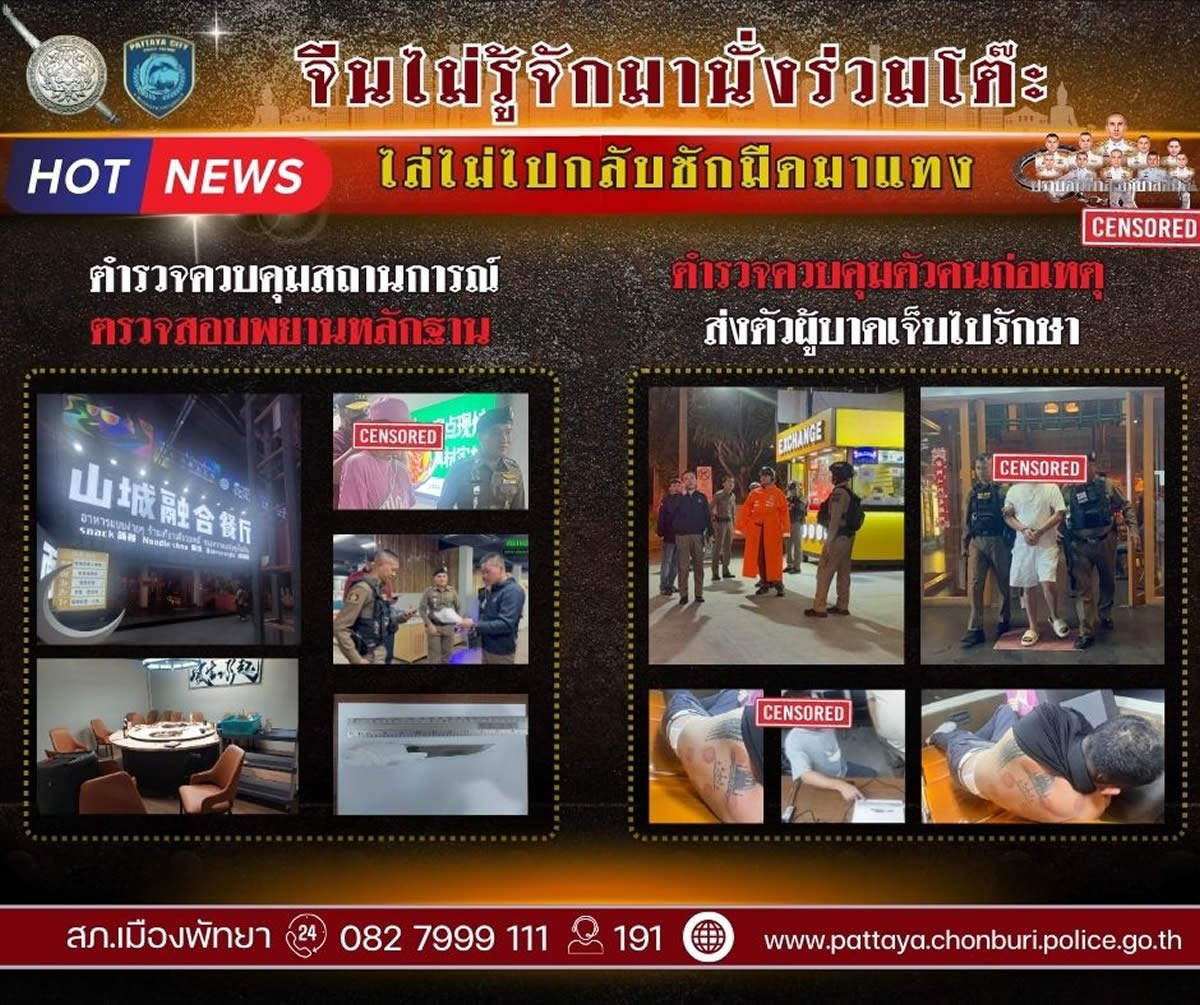 2025年5月22日午前0時10分ごろ、パタヤ市セカンドロード沿いの高級中華レストラン「ラオ・ダオディー・グオジー」5階で、中国人同士による刺傷事件が発生しました。