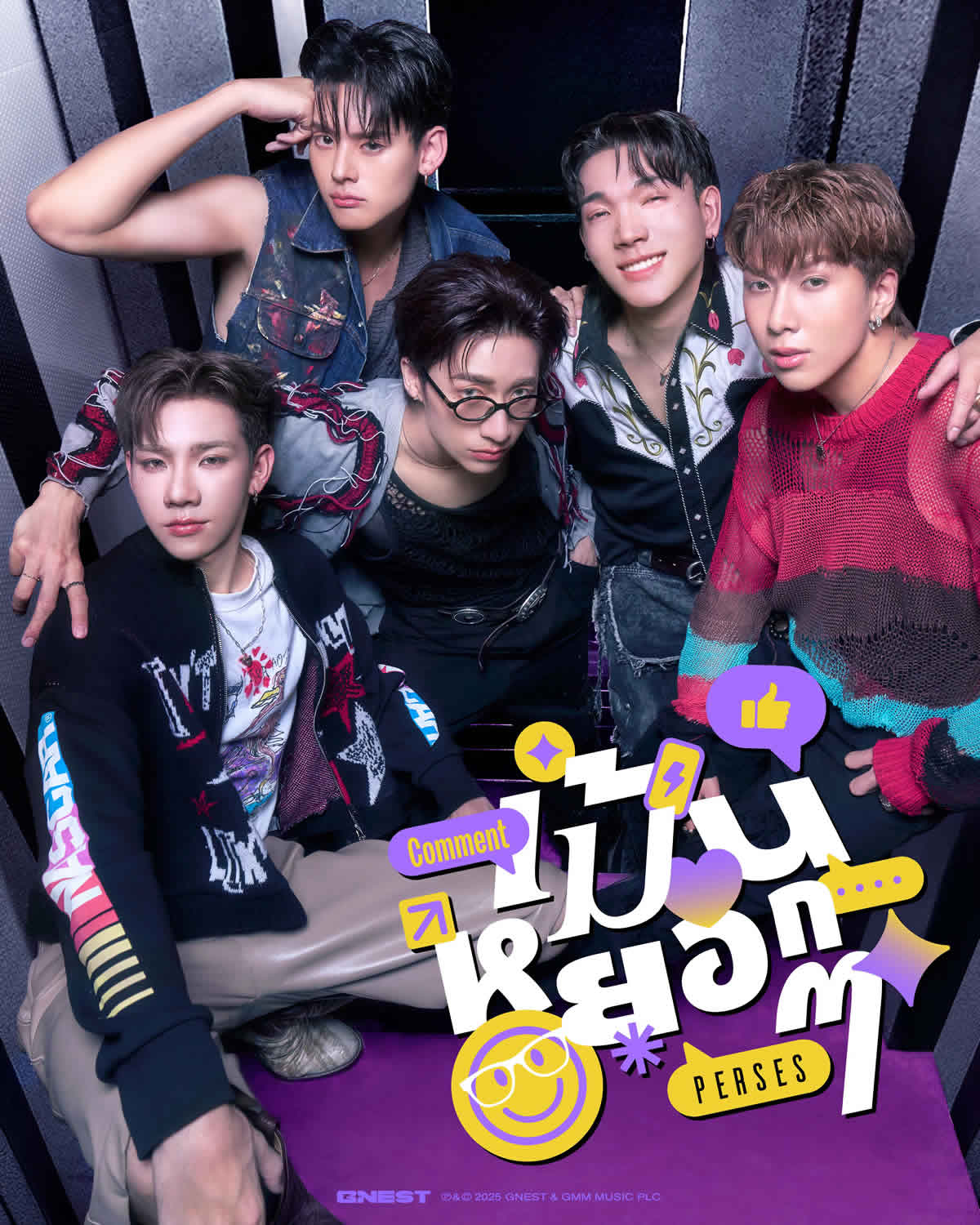 タイの男性5人組ダンス&ボーカルグループ PERSES(プラッギー、クリティン、パーム、ネー、ジャン)が、ニューシングル『เม้นหยอกๆ(メン・ヨークヨーク/Comment)』をリリースしました。今回の楽曲は、SNS上で“冗談のように見せかけて本当は想いを伝えたい”という、現代的な片想いの気持ちを描いたポップナンバーです。