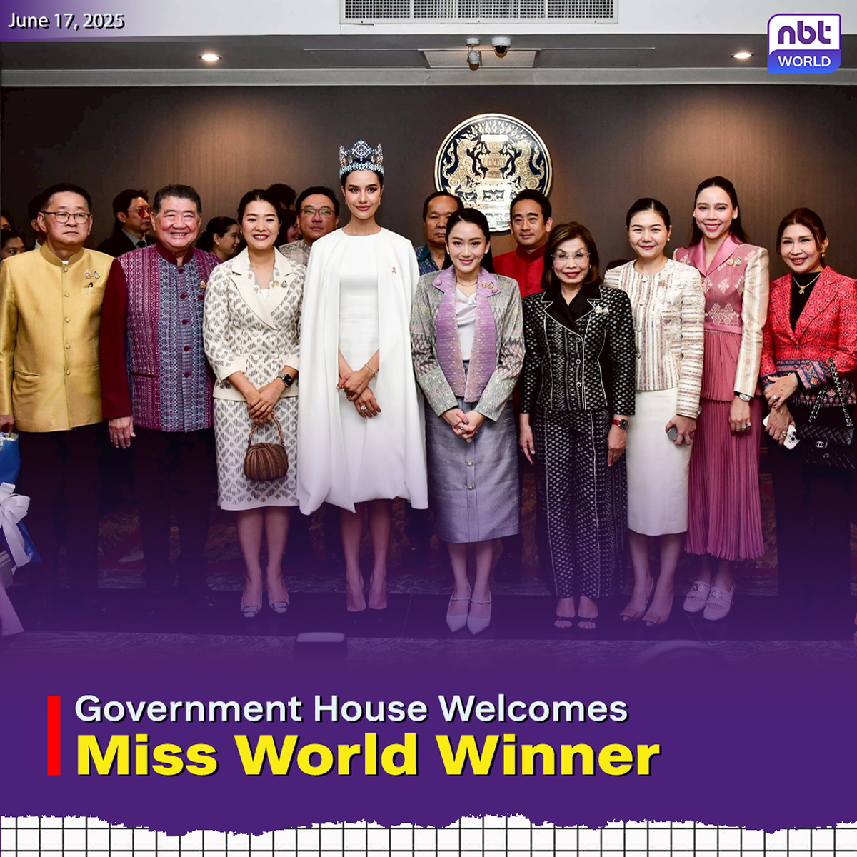 「ミス・ワールド2025」でタイ人として初の優勝を果たした愛称オパールことスチャーター・チュアンシリーさんが2025年6月17日、バンコクの首相府「タイ・クーファー館」を訪問し、ペートンターン・チナワット首相から公式に歓迎を受けました。タイ政府メディアNNTが伝えています。