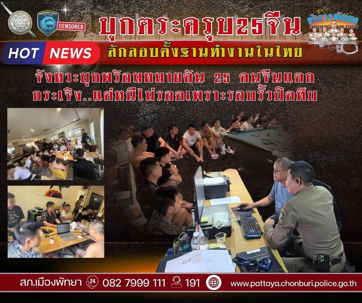 2025年6月17日午前、タイ東部チョンブリ県パタヤ市で、タイ警察が中国人グループ25人を不法就労の疑いで拘束しました。摘発を行ったのは、パタヤ署および管轄の捜査部隊で、観光ビザで入国した中国人が住宅を拠点に組織的な活動を行っていた疑いが持たれています。