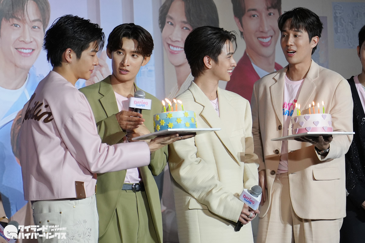向井は「このドラマを一生懸命やっていい経験になりました。本当にキャスト・スタッフの皆さんが優しくしてくれたから『Dating Game』が完成した。たくさんの人に見てもらいたいです。それだけが今の願いです」と語り、フルークも「同じ願いです。このシリーズが多くの人に届くことを願います」と笑顔で語り、ろうそくの火を吹き消した。
