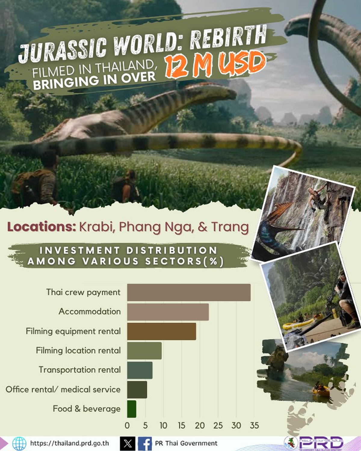 ハリウッドの人気シリーズ最新作『ジュラシック・ワールド/復活の大地(原題:Jurassic World: Rebirth)』の撮影が行われたタイ南部において、制作側が支出した費用の詳細がタイ国フィルムオフィス(Thailand Film Office)から公開されました。