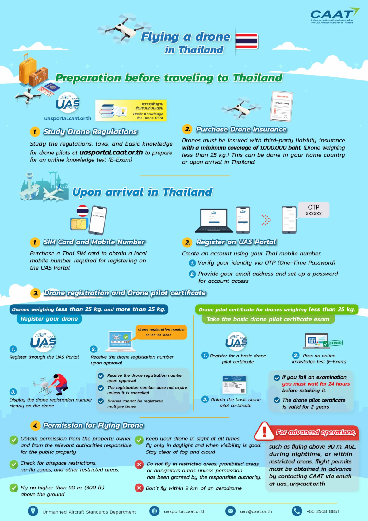 メール:uav@caat.or.th / 特別飛行:uas_u@caat.or.th