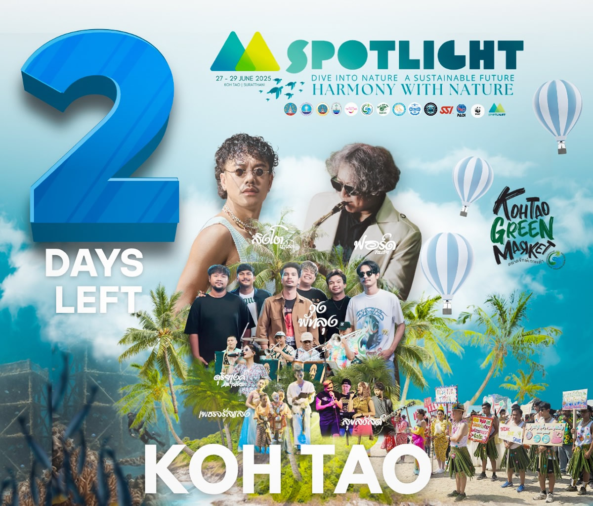 期間中は、シントー・ナムチョーク、フォード・ソップチャイ、ウォン・パッタルンなど人気アーティストによる夜のコンサートが開催されるほか、サンゴ礁の再生活動、海中・ビーチの清掃、係留ロープの設置、漁師と連携した魚群形成プロジェクトなど、多彩な環境活動が展開されます。
