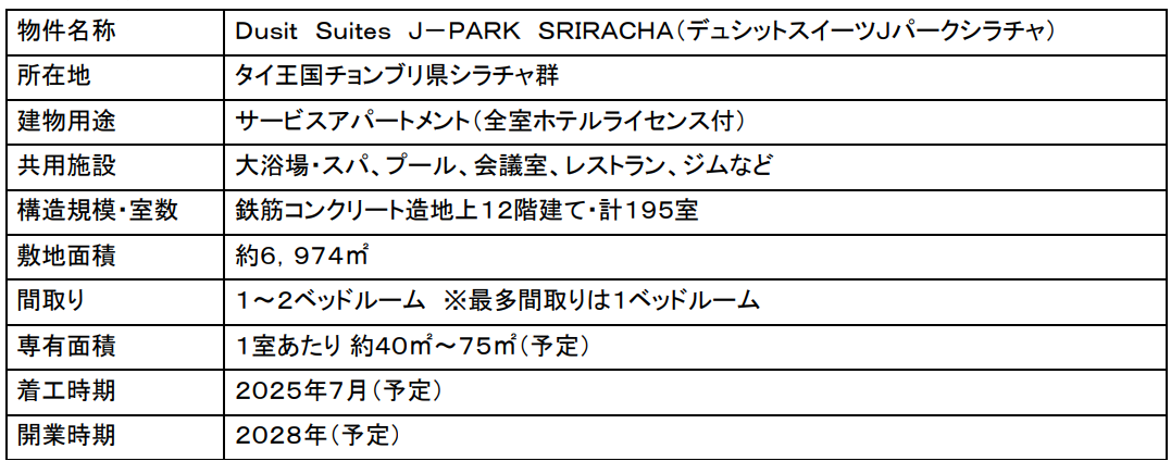 ■サービスアパートメント事業「Dusit Suites J-PARK SRIRACHA」 概要