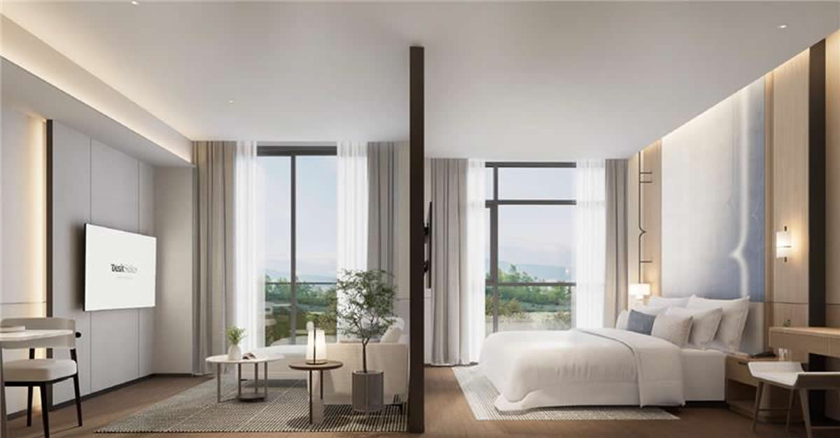 「デュシットスイーツJパークシラチャ」は地上12階建て、総室数195室を備え、専有面積は1室あたり50平方メートル以上が中心となっています。すべての部屋で短期宿泊にも対応し、長期滞在者だけでなく幅広いニーズに応える計画です。