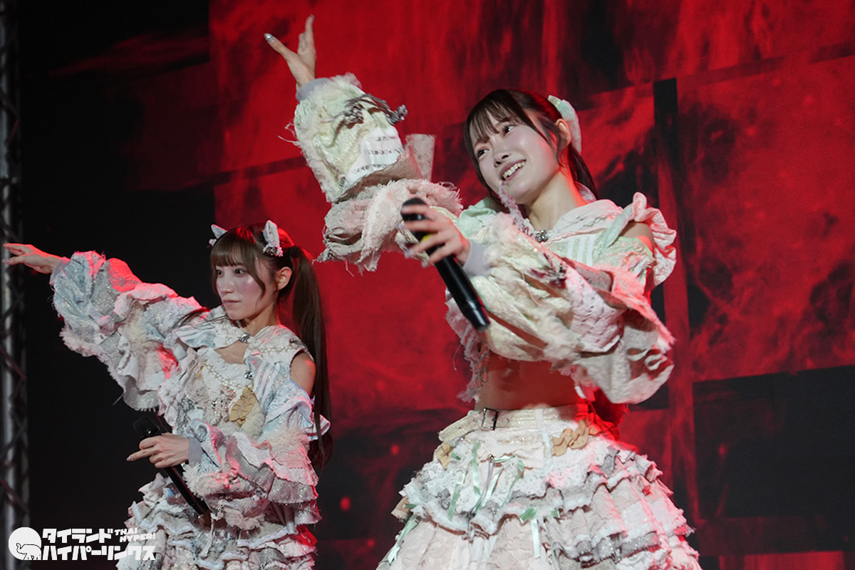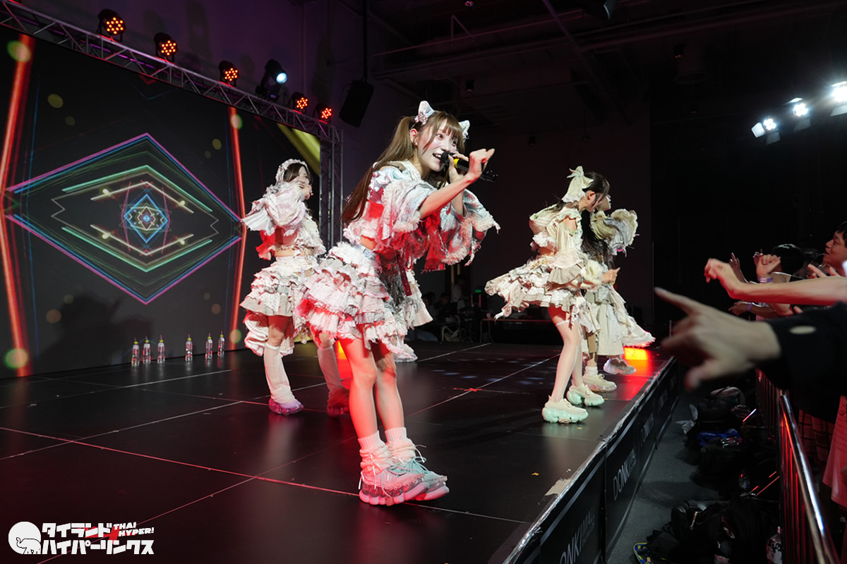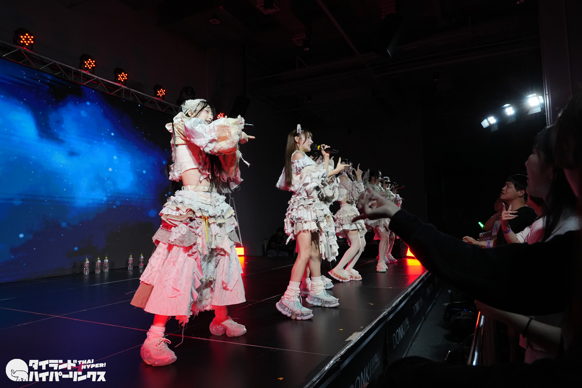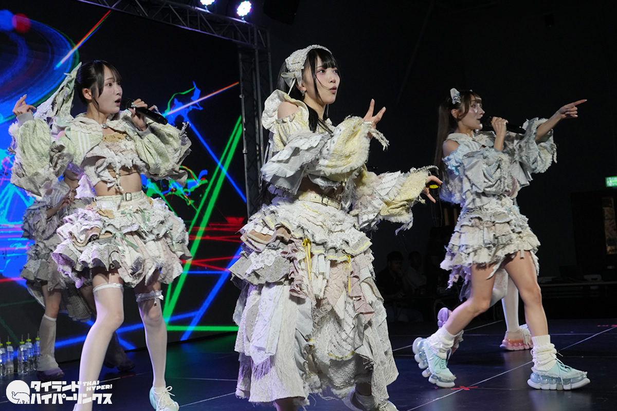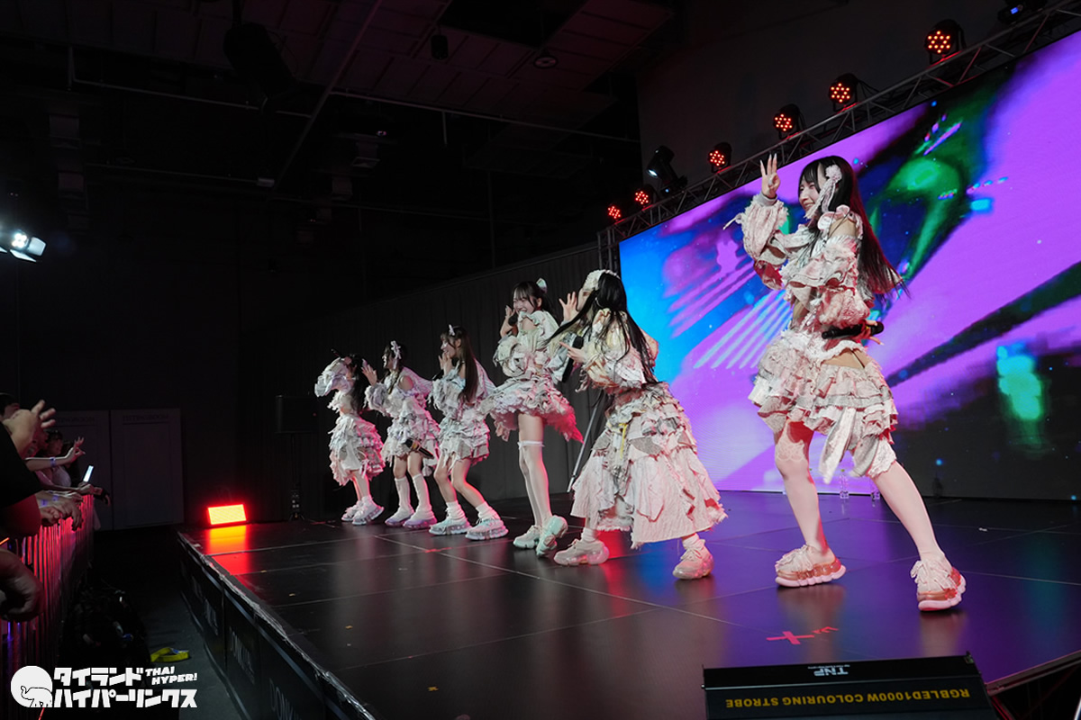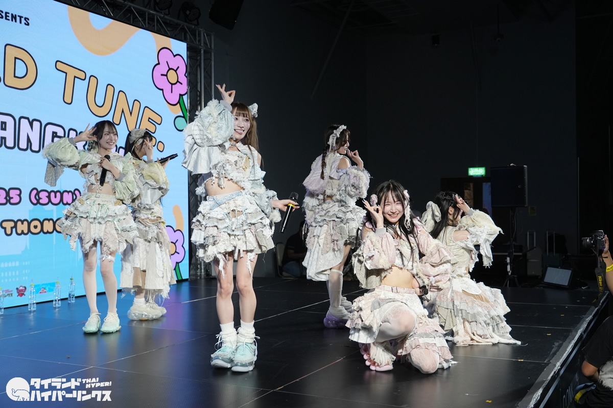 今回が初めての海外遠征となったMerry BAD TUNE.は、6月28日(土)に同会場で開催された、振付師いどみん氏の生誕ライブのために訪タイ。同日にはオフ会も行われ、その翌日にワンマンライブ「Merry BAD TUNE. LIVE in Bangkok」を行い、その日のうちに日本へと発ちました。なお、日本からMerry BAD TUNE.を追ってタイを訪れたファンは、60人にも上ったといいます。