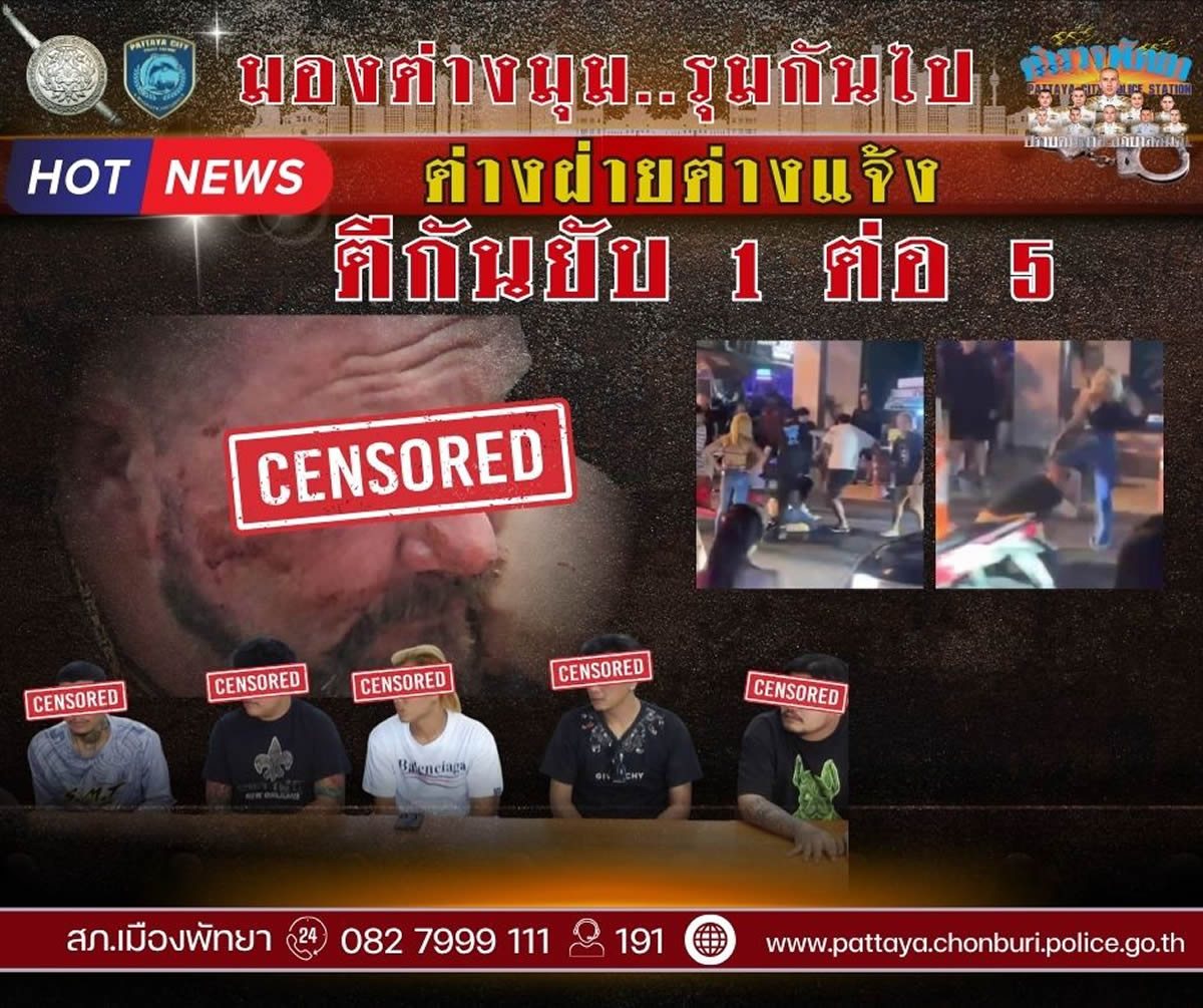 パタヤ警察署は、被疑者らに対し傷害の容疑で事情聴取を行い、刑事訴追に向けて捜査を進めています。