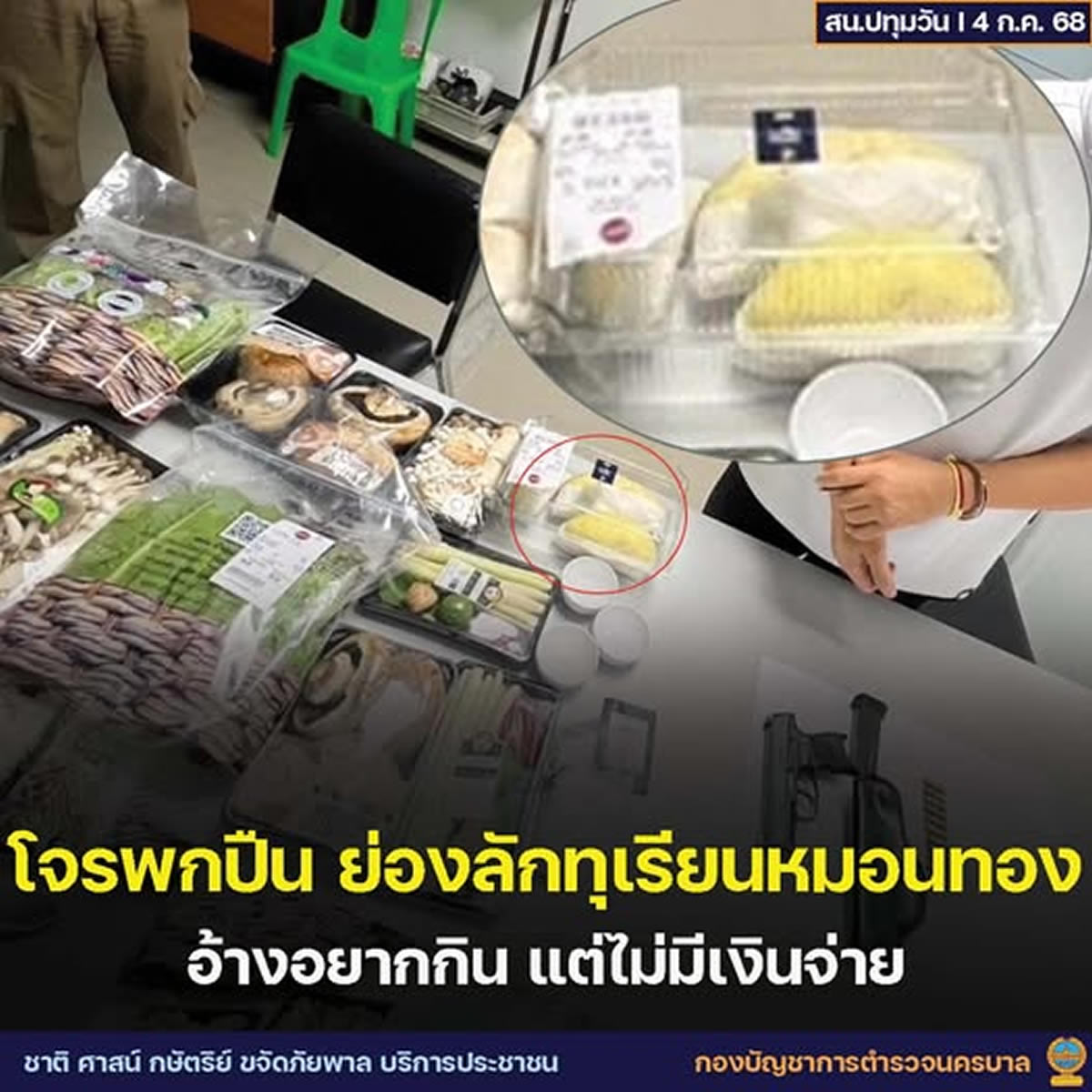2025年7月3日(木)、バンコク中心部の百貨店で万引きをした男が逮捕され、所持品から拳銃と実弾11発が見つかりました。男はその場から逃走を試みましたが、警察官により即座に取り押さえられました。