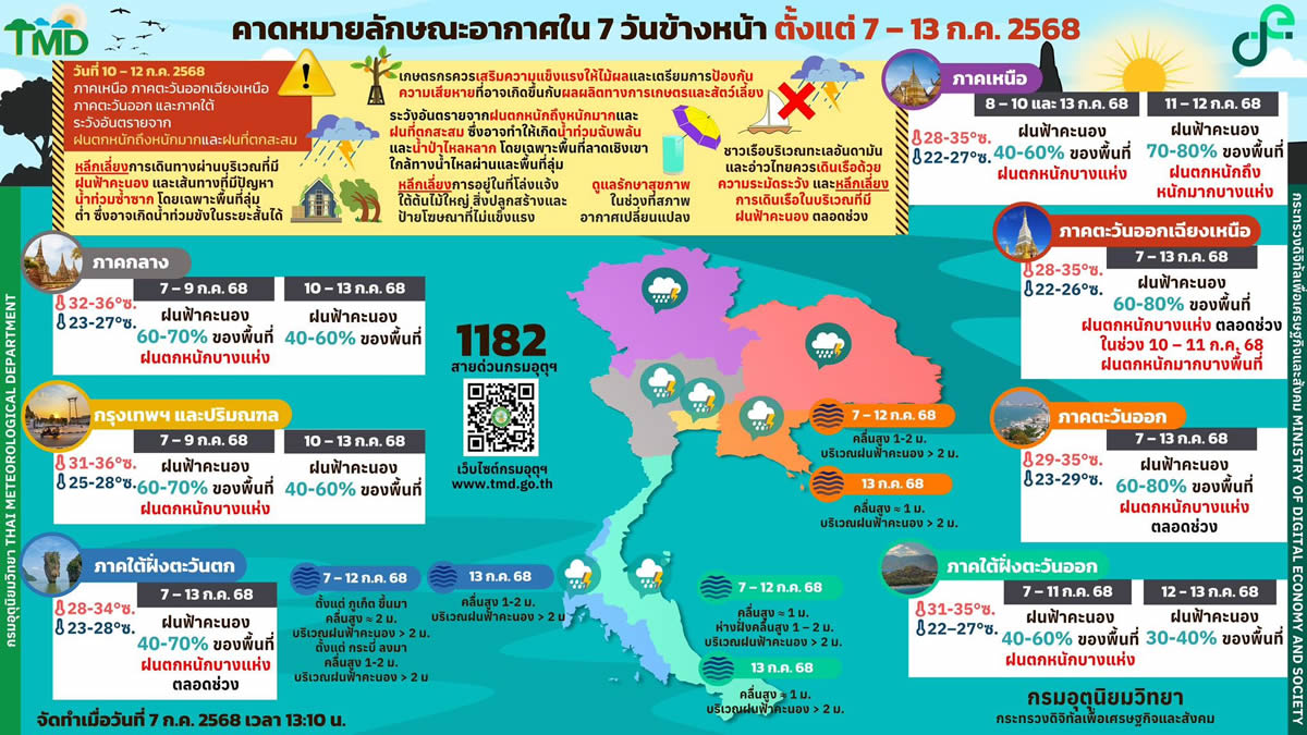 タイ政府は2025年7月6日から12日まで、全国33県に対し大雨とそれに伴う鉄砲水、地滑り、増水の危険性が高まっているとして、高度な警戒態勢を維持するよう指示を出しました。タイ政府メディアNNTが伝えています。