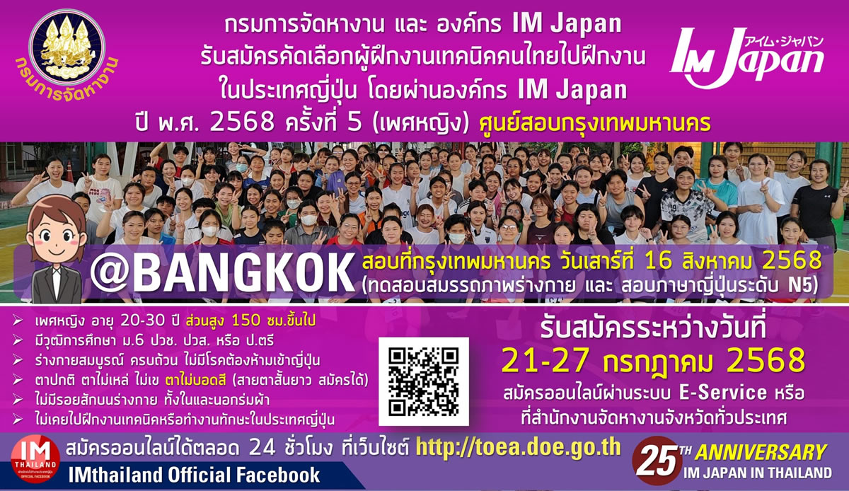 応募資格や試験日程などの詳細は、タイ労働省雇用局の公式ウェブサイト、海外雇用管理部門、またはIMthailandのFacebookページにて確認できます。