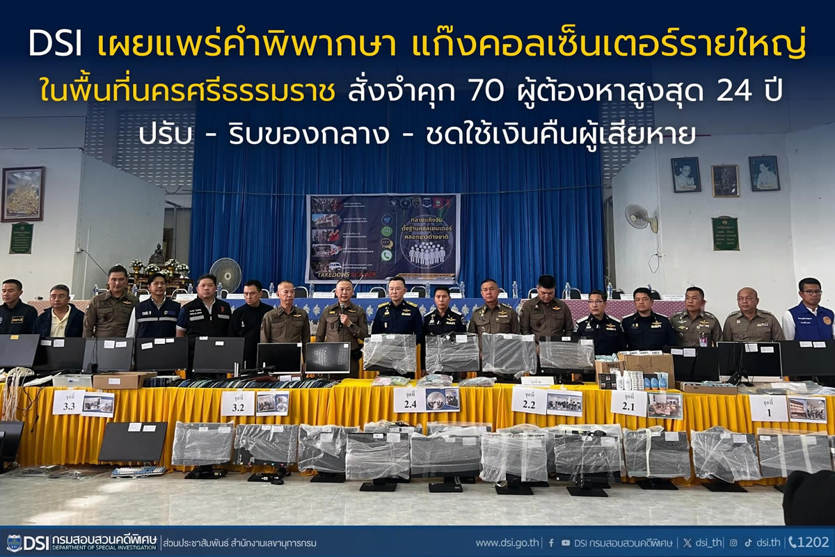 タイ特別捜査局(DSI)が2025年7月9日に明らかにしたところによると、ナコーンシータンマラート県のトゥンソン地方裁判所が下した判決内容を、2025年5月22日に発表しました。同判決は、タイ国内で最大規模とされるコールセンター詐欺組織に関与した70人に対し、有罪を言い渡したものです。