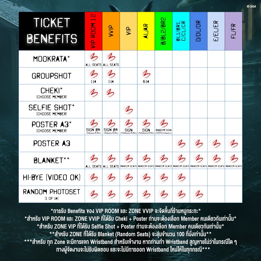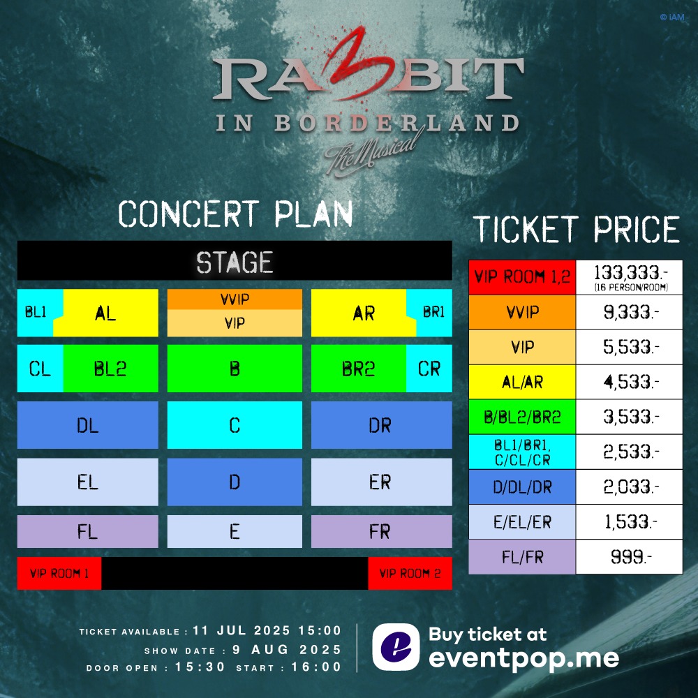 チケット価格:999 / 1,533 / 2,033 / 2,533 / 3,533 / 4,533 / 5,533 / 9,333 / 133,333 バーツ