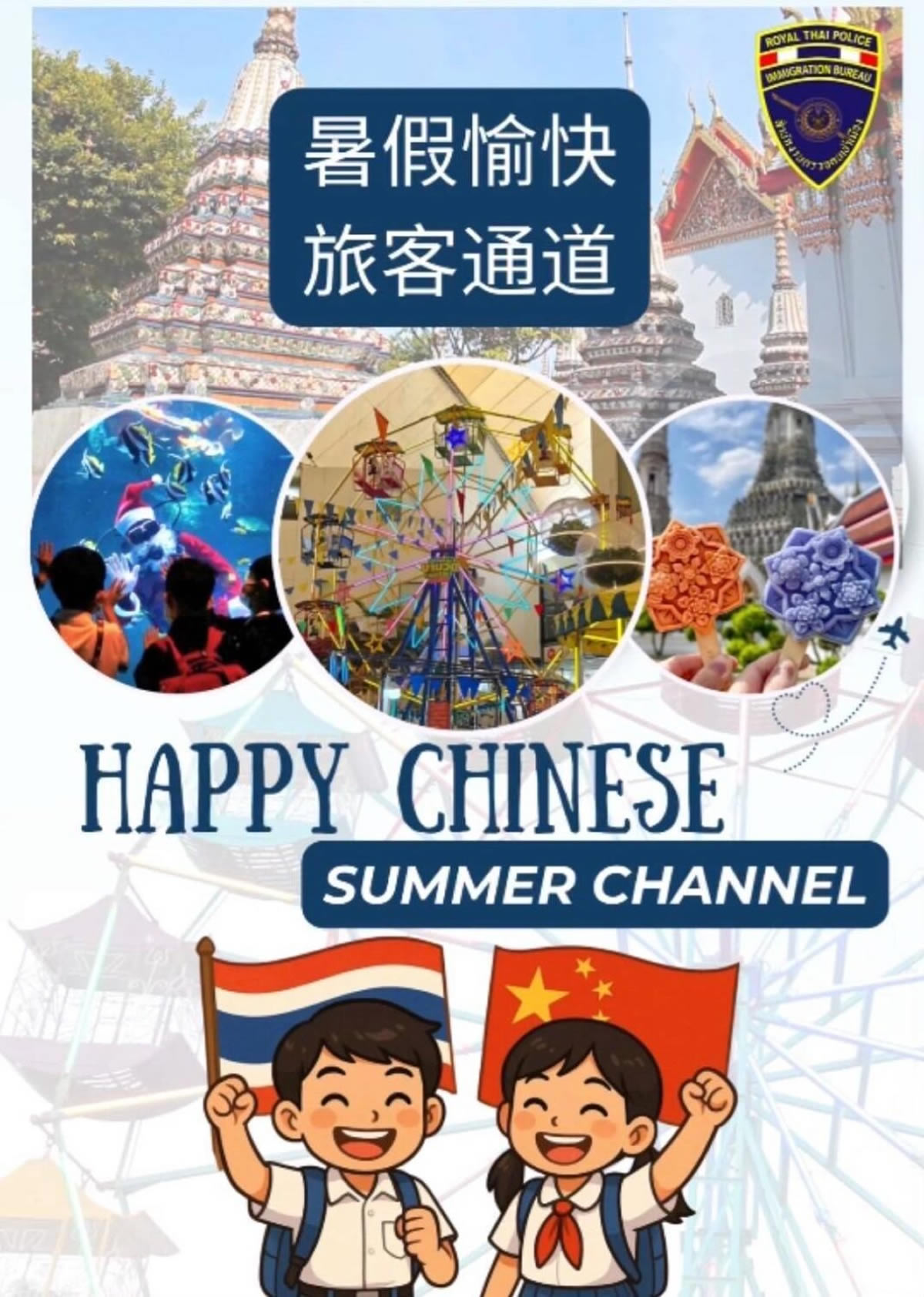 タイ入国管理局は2025年7月、中国の夏休みに合わせて中国人観光客の利便性を高め、タイへの観光促進を図るため、全国4つの空港で「Happy Chinese Summer Channel(ハッピーチャイニーズ・サマーチャンネル)」と呼ばれる専用の入国審査レーンを設置しました。