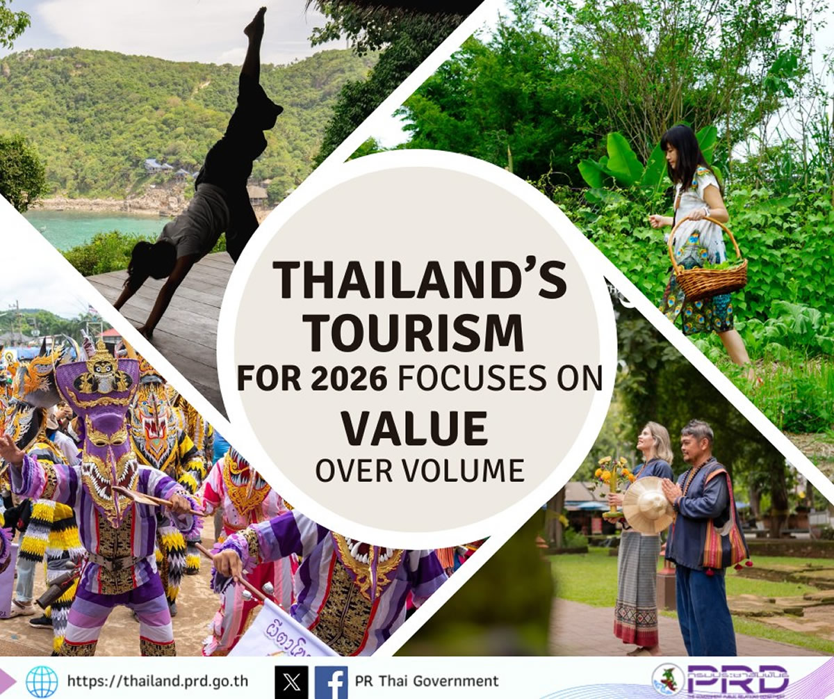 タイ国政府観光庁(TAT)は、「2026年アクションプラン」を発表し、今後の観光政策において「観光価値の向上(Value)」を「訪問者数の増加(Volume)」よりも優先する方針を明らかにしました。今後のタイ観光は、持続可能性・質の高い体験・危機に強い観光産業の構築を主軸とします。2025年7月16日にタイ広報局が伝えています。