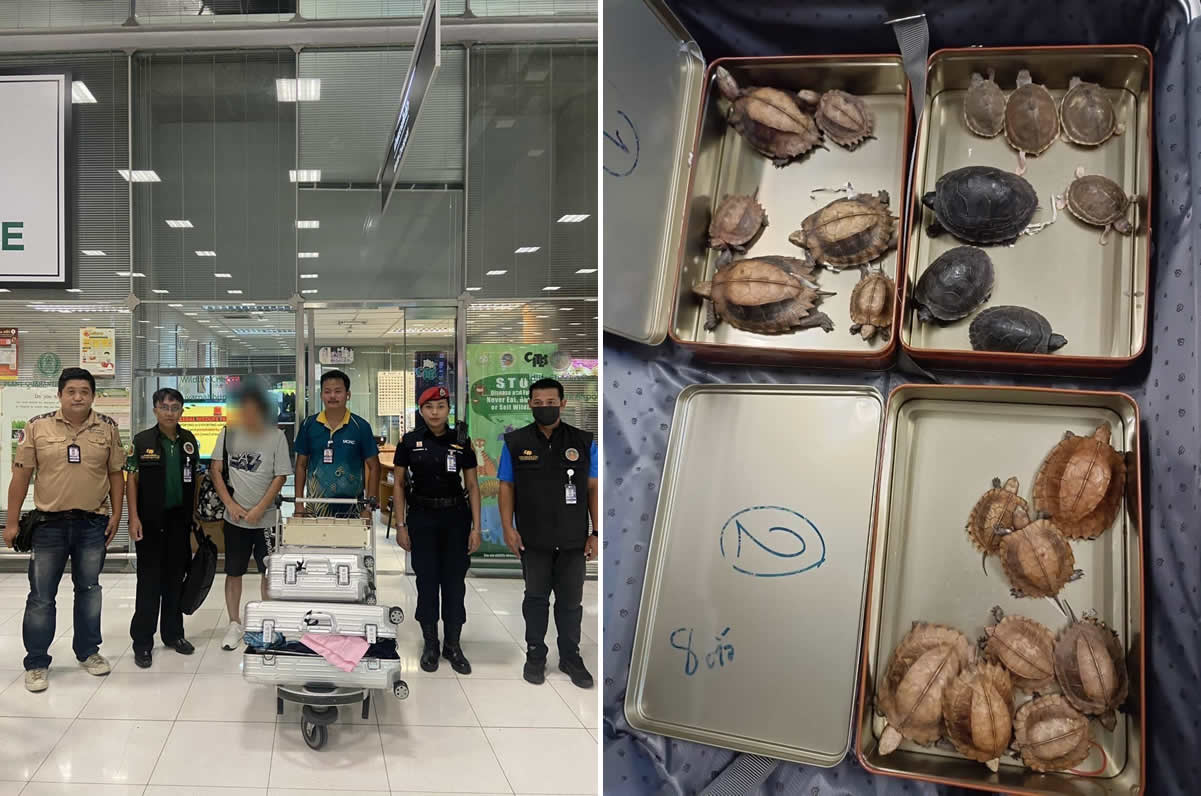 2025年7月25日、バンコク近郊のスワンナプーム空港で、日本人の男(53歳)が、インドホシガメやトカゲなどの生きた動物を違法に国外へ持ち出そうとしたとして、野生動物検査官により現行犯逮捕されました。