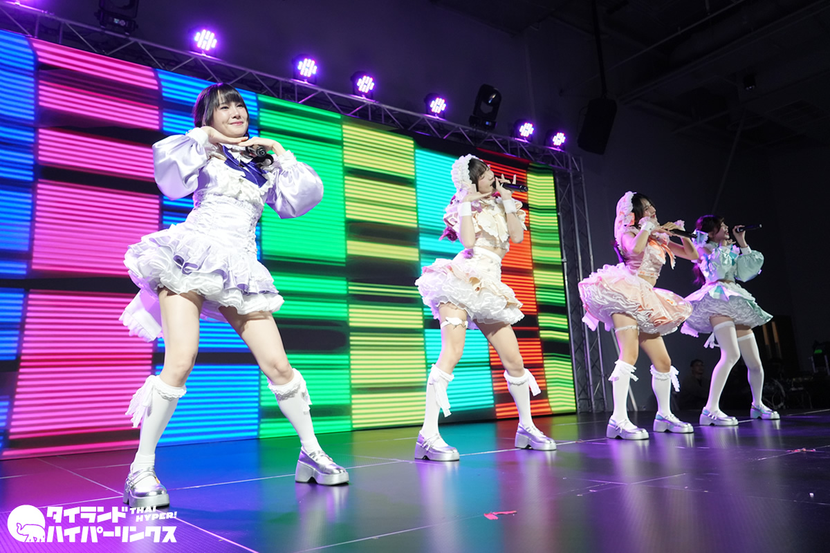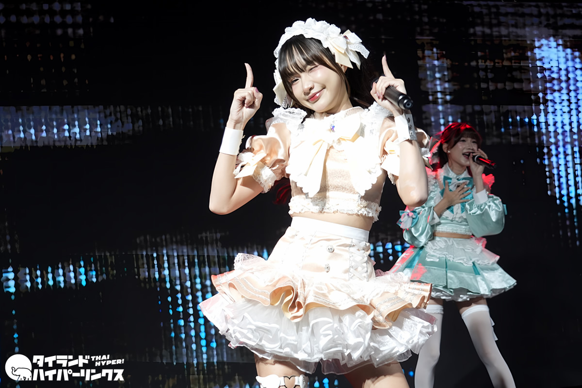 この日の3番手で登場したのは、Siamdolと日本のArcJewel。「サイアムドンキフェスティバル」のステージでは最後にサプライズで「mero♡mero」のミュージックビデオが初公開されました。