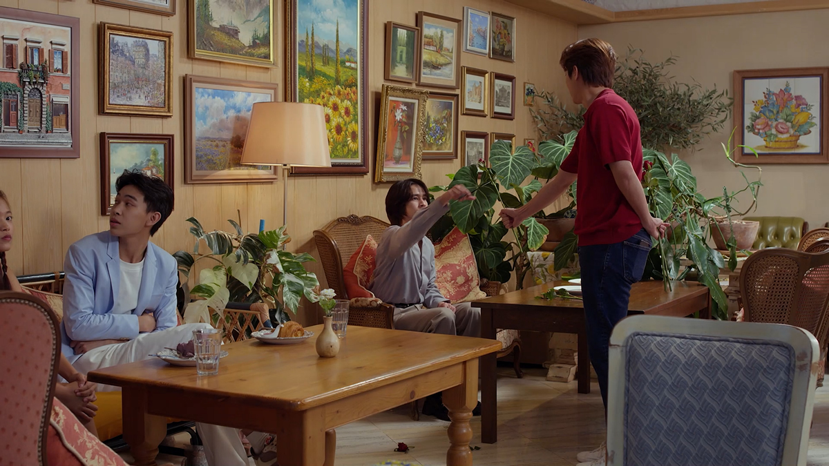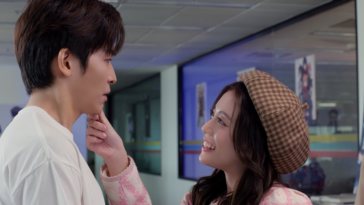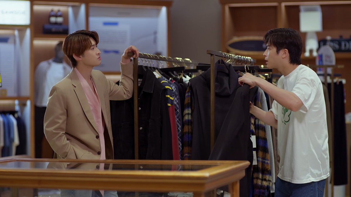 解禁された場面写真は、クールぶる従兄・ジュンジの嫉妬心を煽るため、イーンスがヒルに接近してアゴくいをしたり、ヒルとイーンスが親密にならないか気になってしょうがないジュンジの姿、ヒルとジュンジが一緒に新入社員歓迎会用の洋服をセレクトしている様子や、お買い物を終えて楽しそうに話す2人、花束を抱えたベイがパットを引き寄せている様子に加え、誠意をもって謝るベイが差し出した赤いバラをちょん切ってしまうパットの姿が切り取られ、Episode5の展開が気になること間違いなし!
