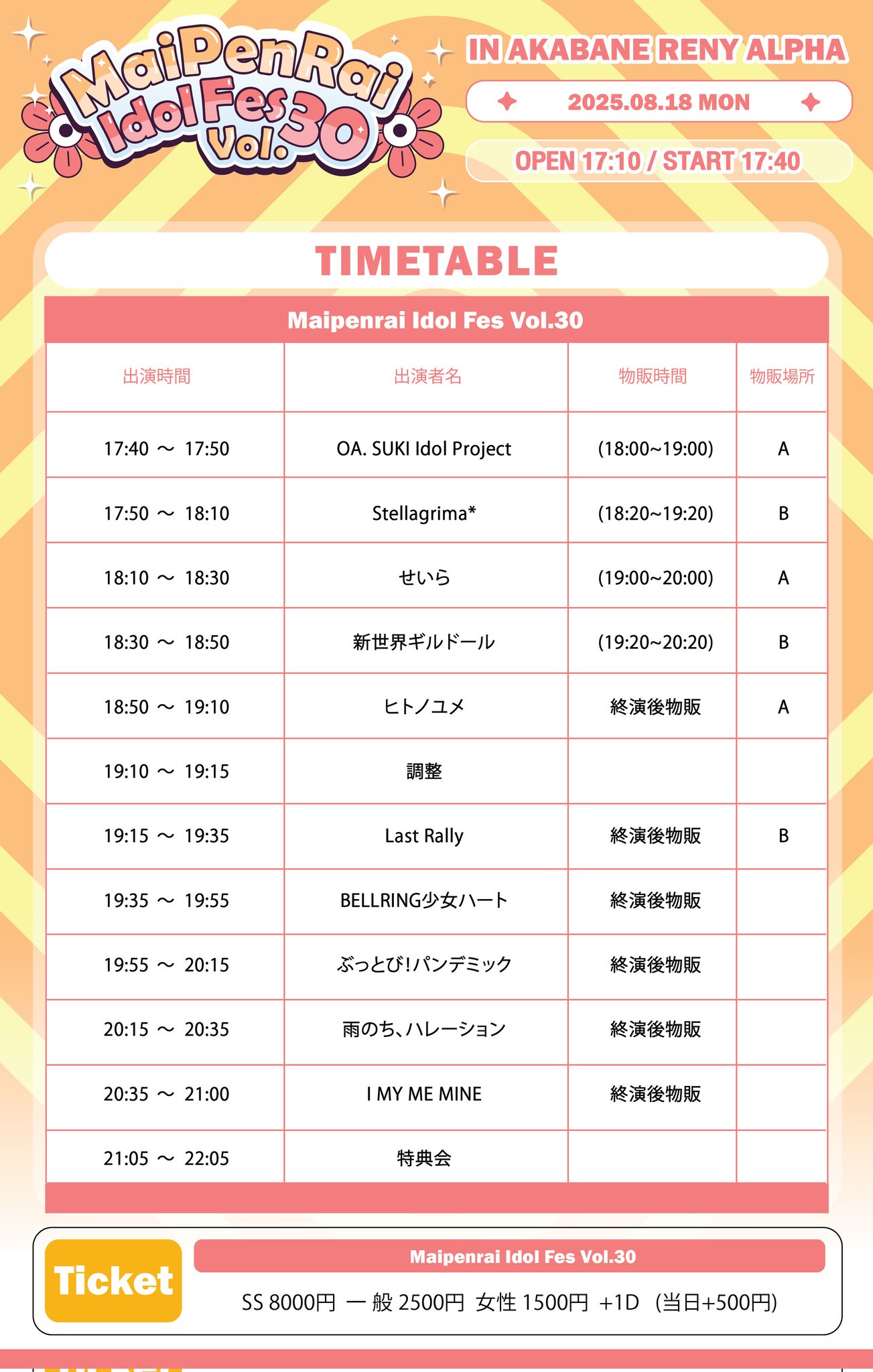 出演は SUKI Idol Project、Stellagrima* 、せいら、新世界ギルドール、ヒトノユメ、Last Rally、BELLRING少女ハート、ぶっとび!パンデミック、雨のち、ハレーション、I MY ME MINE。