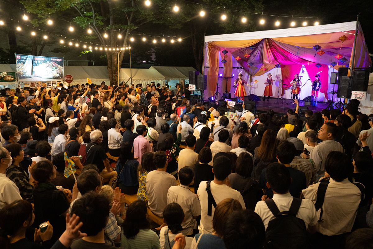 「東京ナイトマーケット」は、アジアの活気と東京らしいセンス、そして渋谷の遊び心を融合させた、唯一無二のナイトイベント。会場には多国籍な屋台グルメをはじめ、ライブステージやDJブース、大道芸、アジア雑貨や古着ショップまでが集まり、夜の公園が熱気に包まれます。