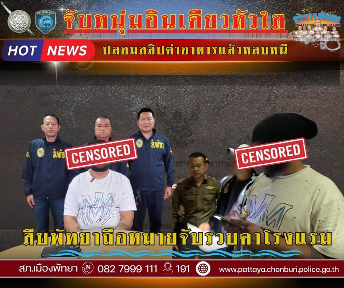 男は、パタヤ地方裁判所が発付した逮捕状の対象者で、「権利に関する文書の偽造」「偽造文書の使用」「支払う意思や能力がないと知りながら高級料理や飲料を注文・飲食した」容疑がかけられています。