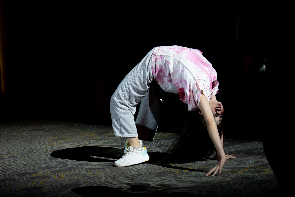 さらに4期生のエミー、エル、ジャンリー、マリーン、ワーワーがゲストとしてゾンビ役で登場し、首の曲がった姿やブリッジでの逆さ歩きなど迫力の演技を披露しました。
